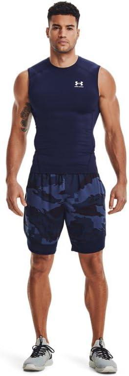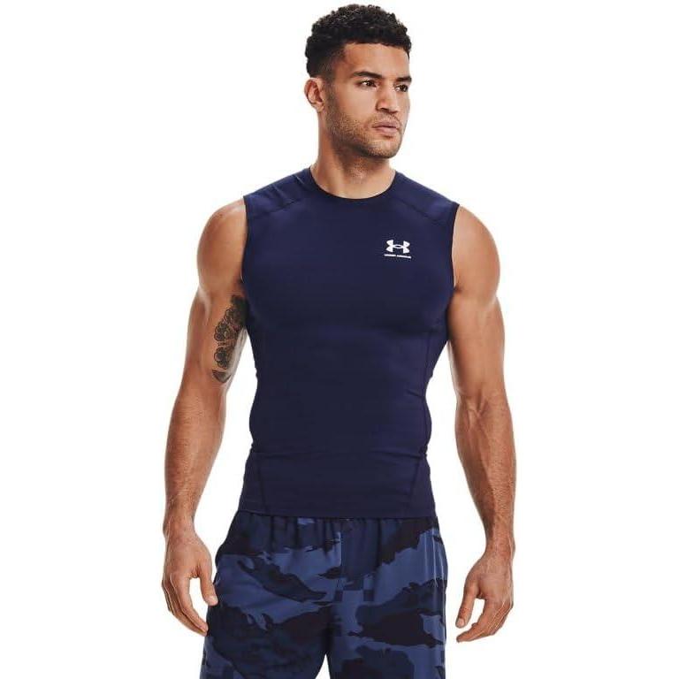 Under Armour Men’s HeatGear Compression Sleeveless T-Shirt(Midnight Navy / White)