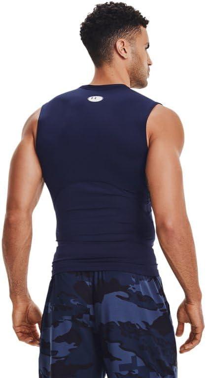 Under Armour Men’s HeatGear Compression Sleeveless T-Shirt(Midnight Navy (410)/White)