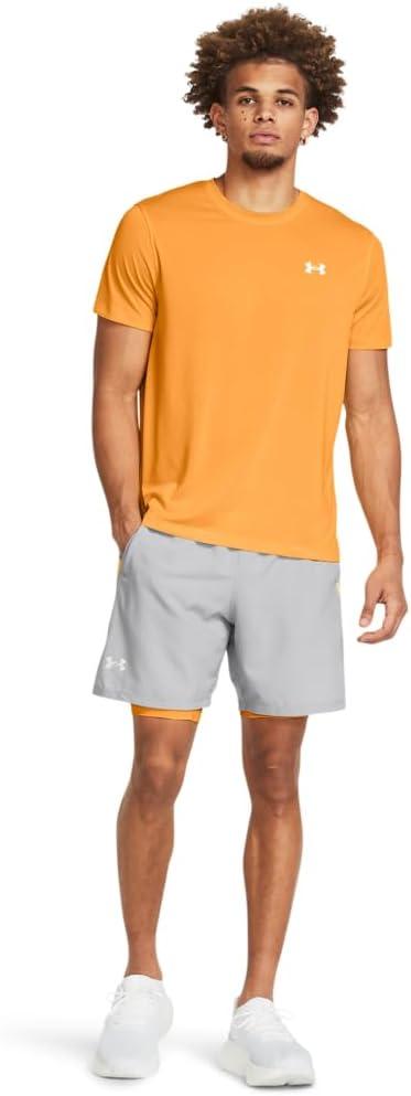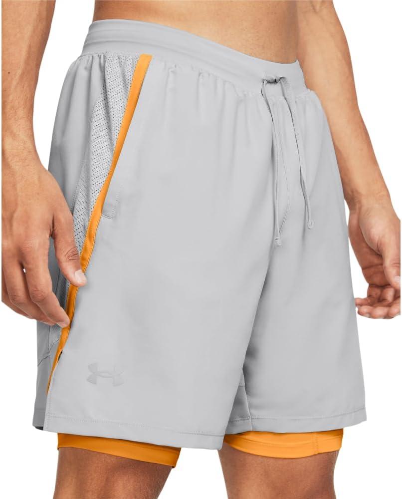 Under Armour Men’s Launch Run 7-inch 2-in-1 Shorts((011) Mod Gray / Nova Orange / Reflective)
