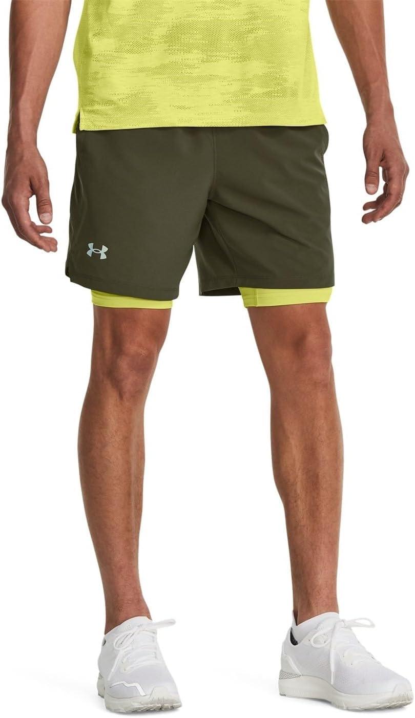 Under Armour Men’s Launch Run 7-inch 2-in-1 Shorts((390) Marine Od Green / Lime Yellow / Reflective)