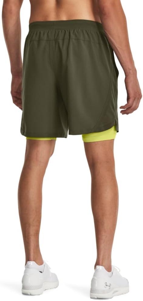 Under Armour Men's Launch Run 7-inch 2-in-1 Shorts((390) Marine Od Green / Lime Yellow / Reflective)