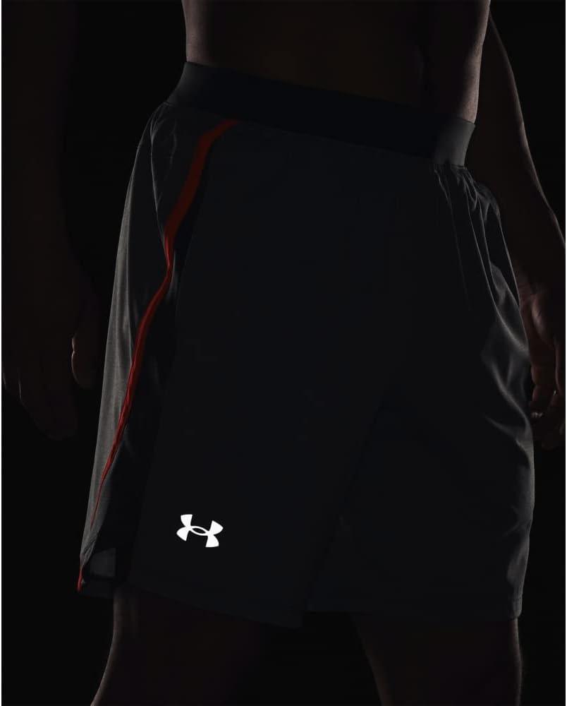 imageUnder Armour Mens Launch Stretch Woven 7inch Shorts017 Pitch Gray Full Heather  Blue Circuit  Reflective