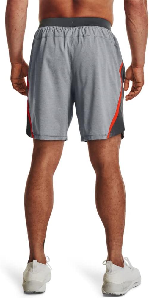 Under Armour Men's Launch Stretch Woven 7-inch Shorts((016) Pitch Gray Full Heather / Bolt Red / Reflective)