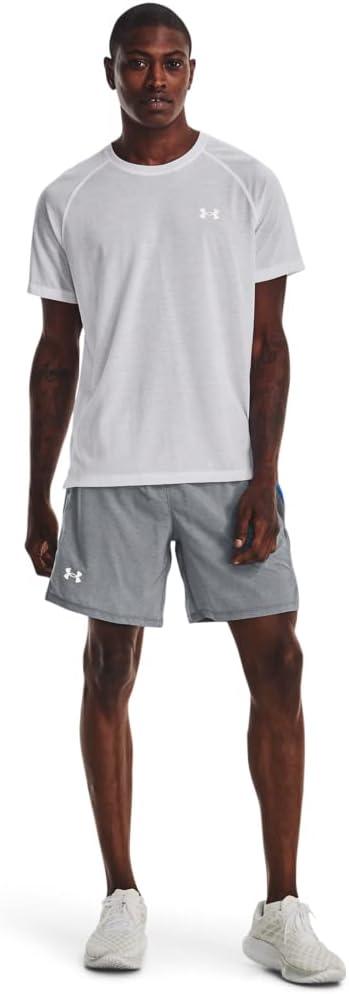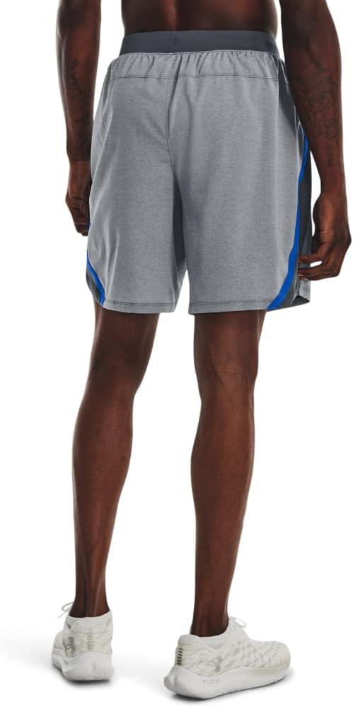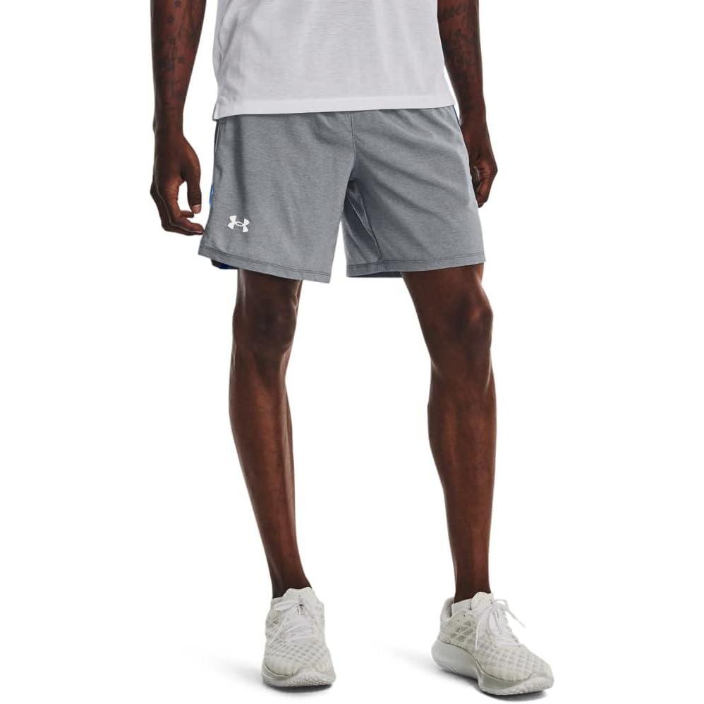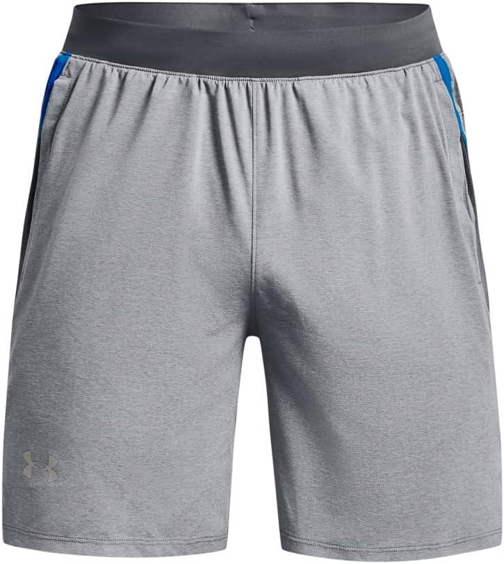 Under Armour Men's Launch Stretch Woven 7-inch Shorts((017) Pitch Gray Full Heather / Blue Circuit / Reflective)