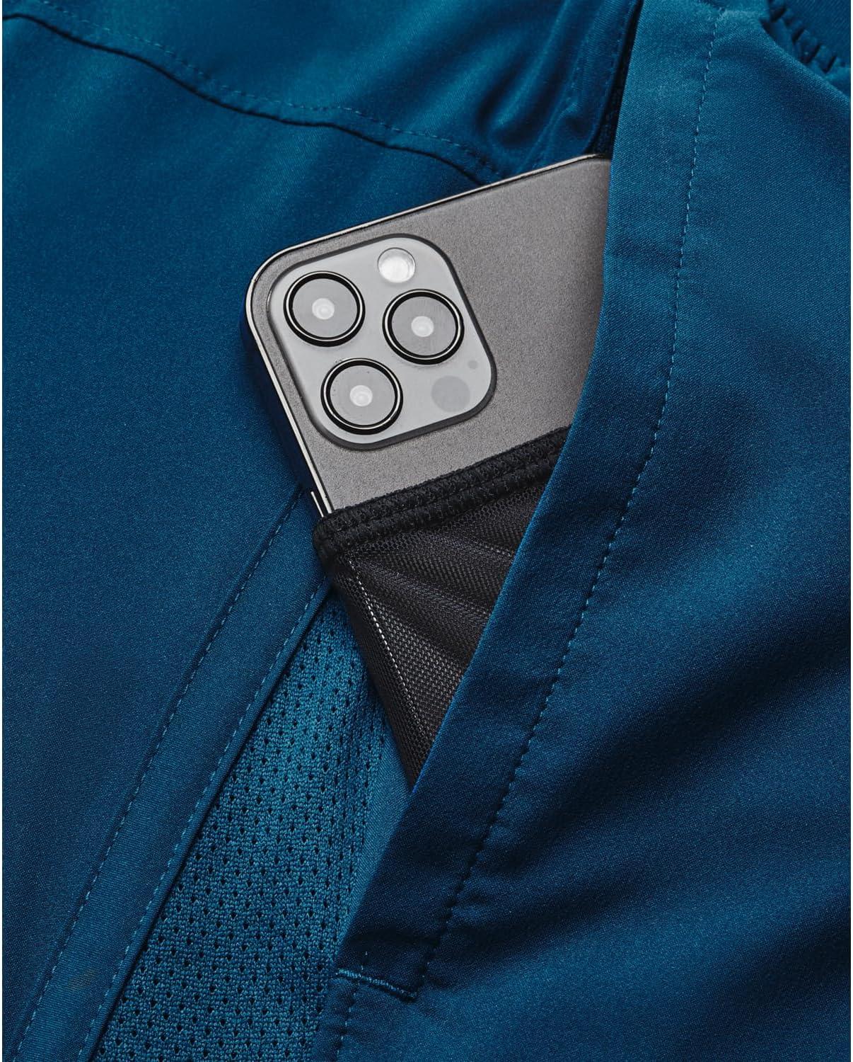 Ultra-light, stretch-woven fabric for totally unrestricted movement. Internal mesh liner helps moisture escape & adds breathability. Mesh side panels for added ventilation. New encased elastic waistband with internal drawcord. Open hand pockets with internal right-side powermesh phone pocket.