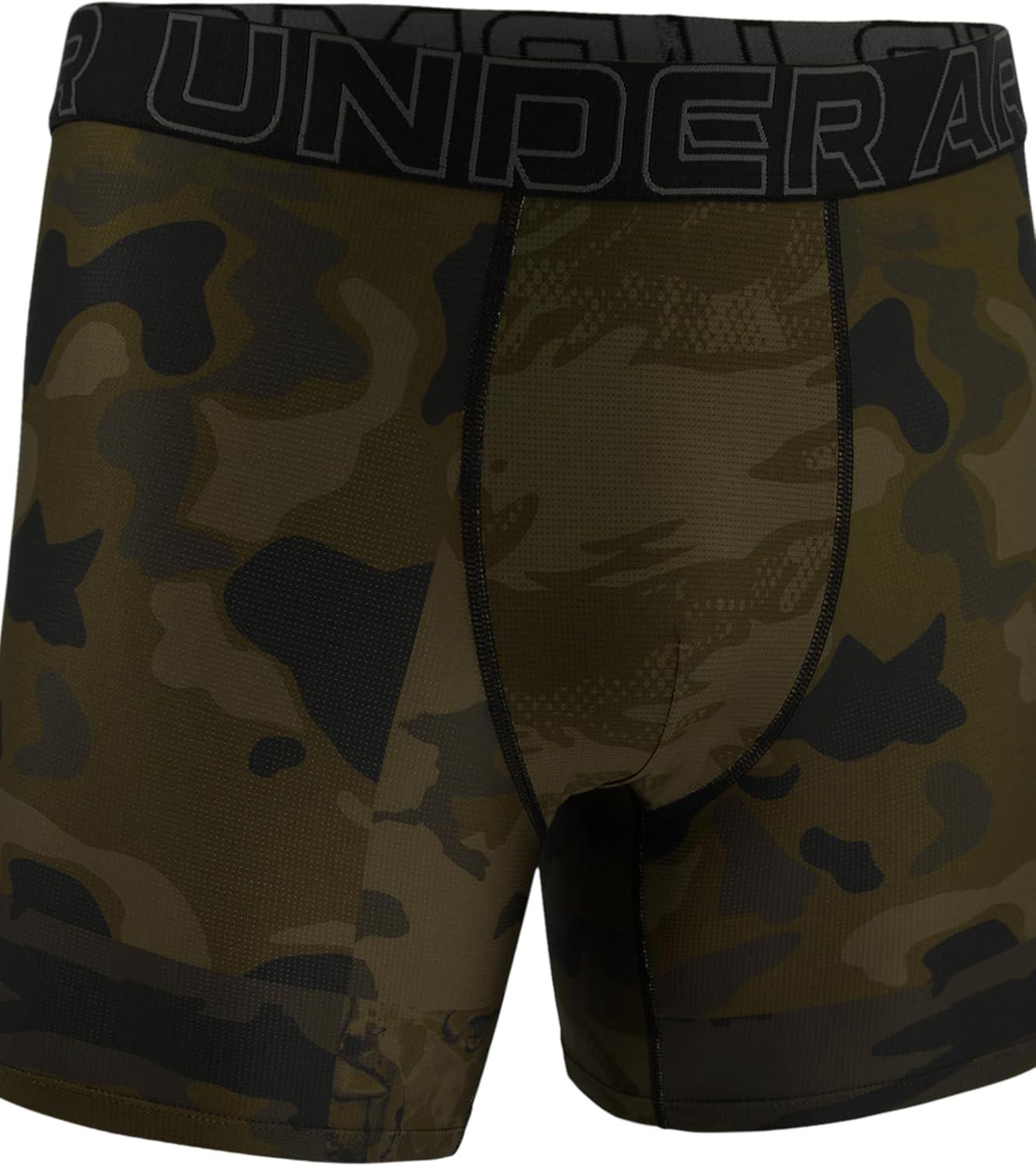 Under Armour mens Performance Tech Mesh Print Singles, 6″ Inseam Boxer Brief(Baroque Green)