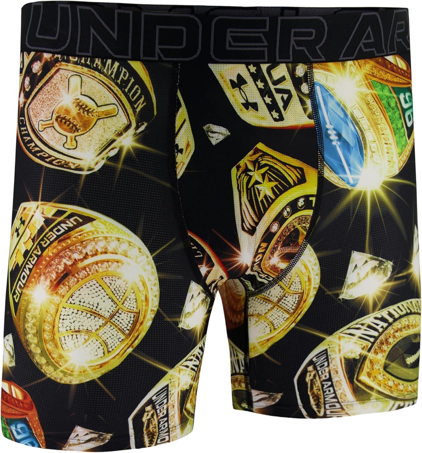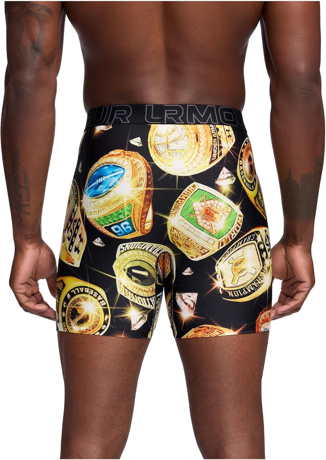 Under Armour mens Performance Tech Mesh Print Singles, 6″ Inseam Boxer Brief(Black/Gold – Single)