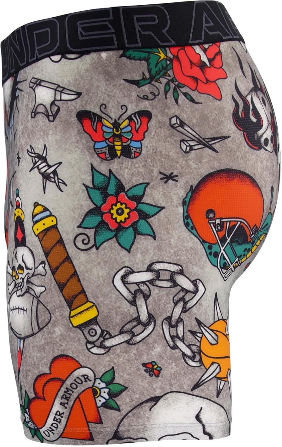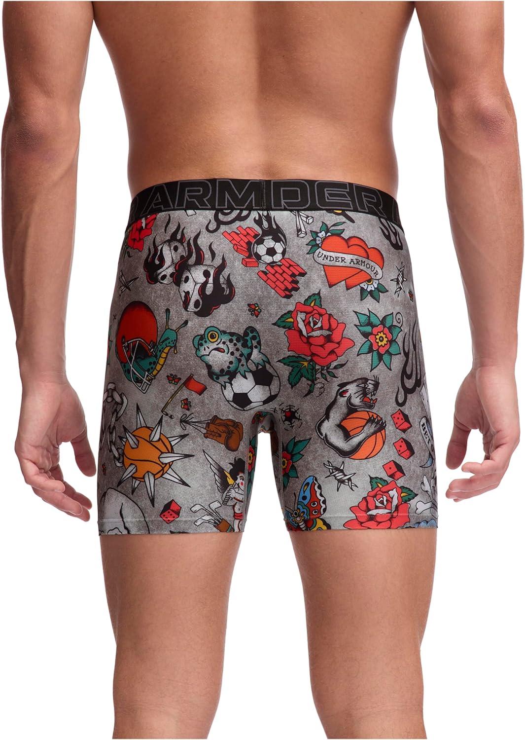 Under Armour mens Performance Tech Mesh Print Singles, 6″ Inseam Boxer Brief(Black/Grey)