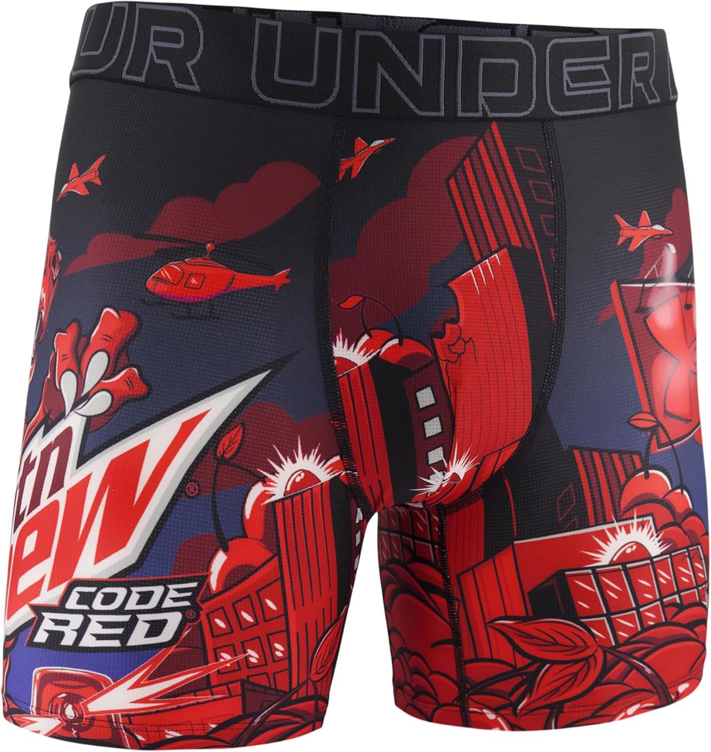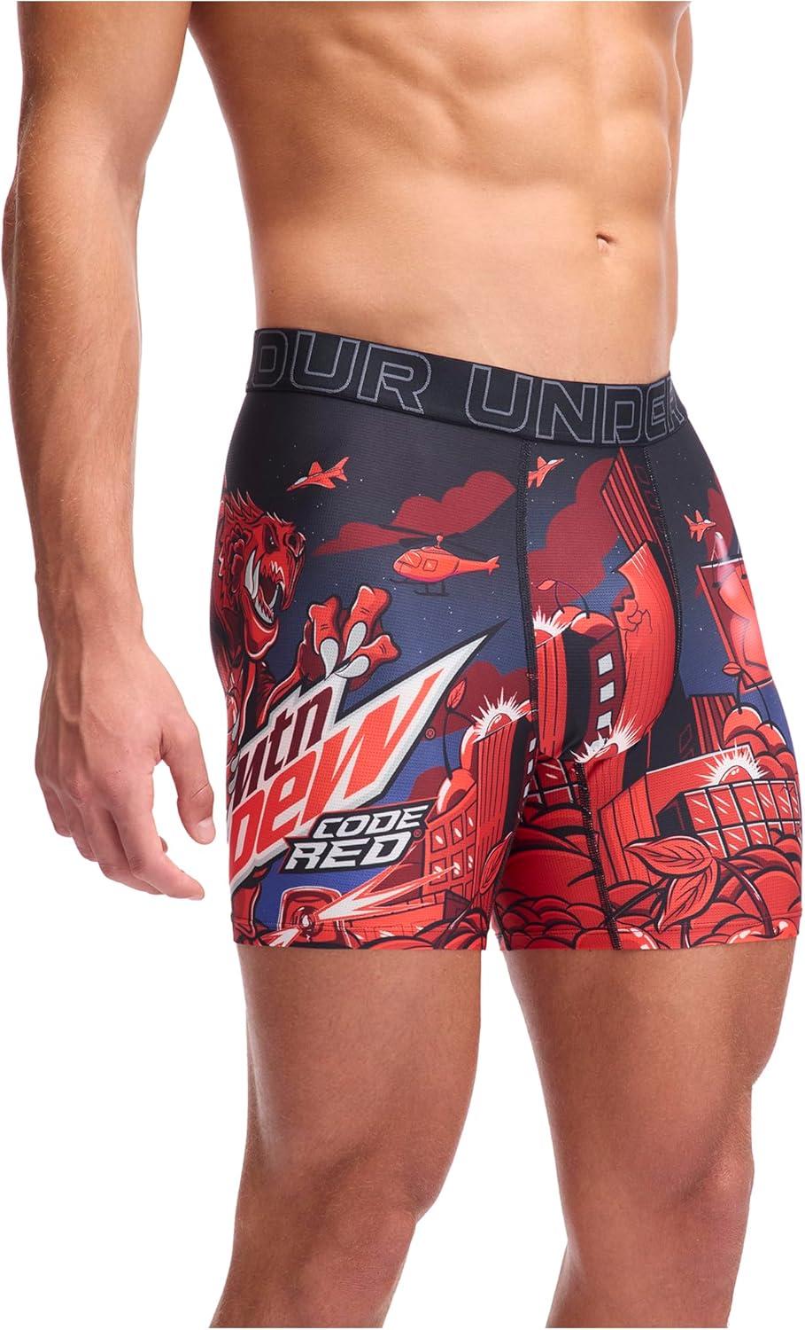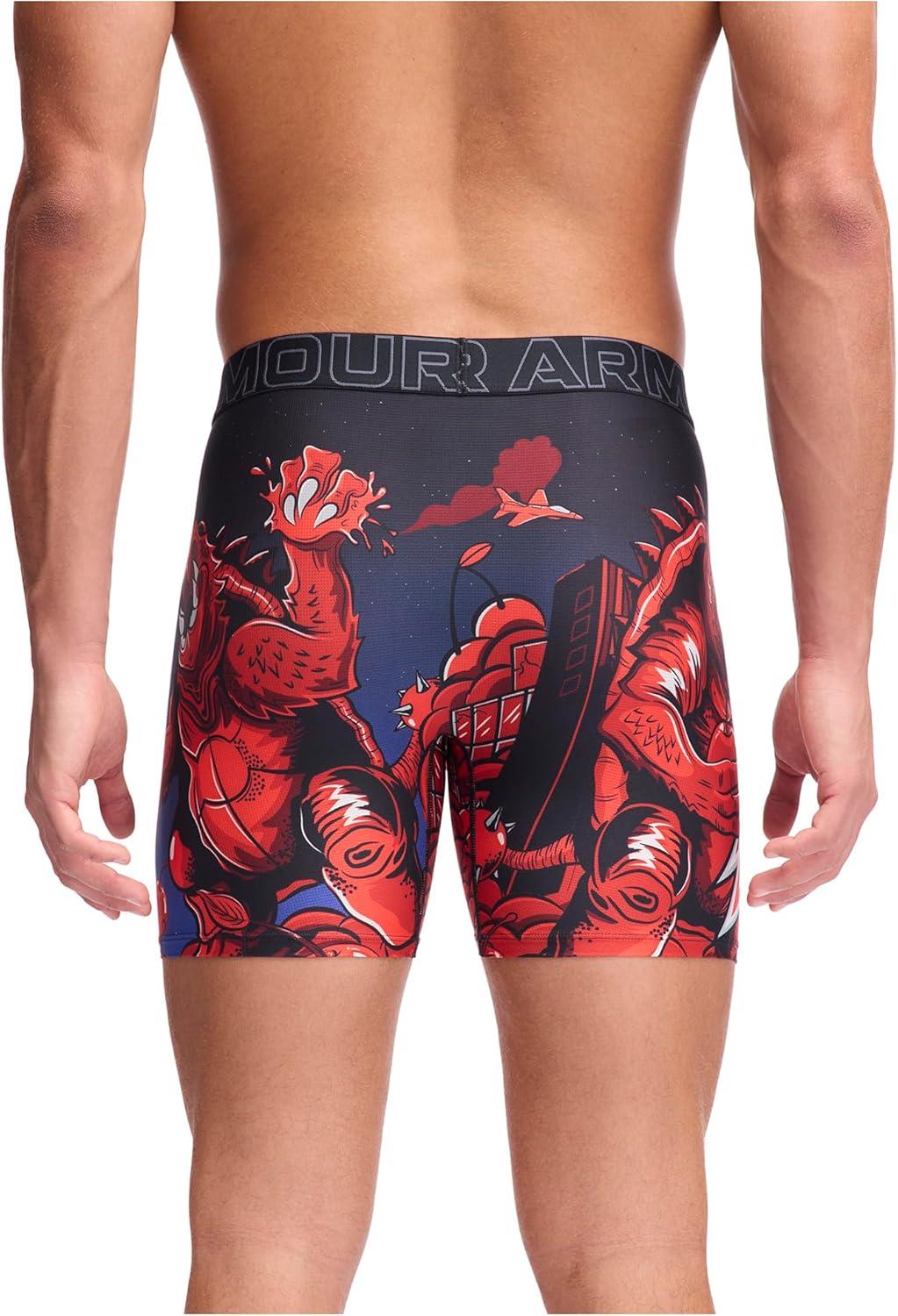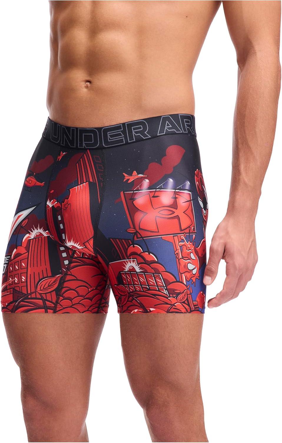 Under Armour mens Performance Tech Mesh Print Singles, 6″ Inseam Boxer Brief(Lava Red)