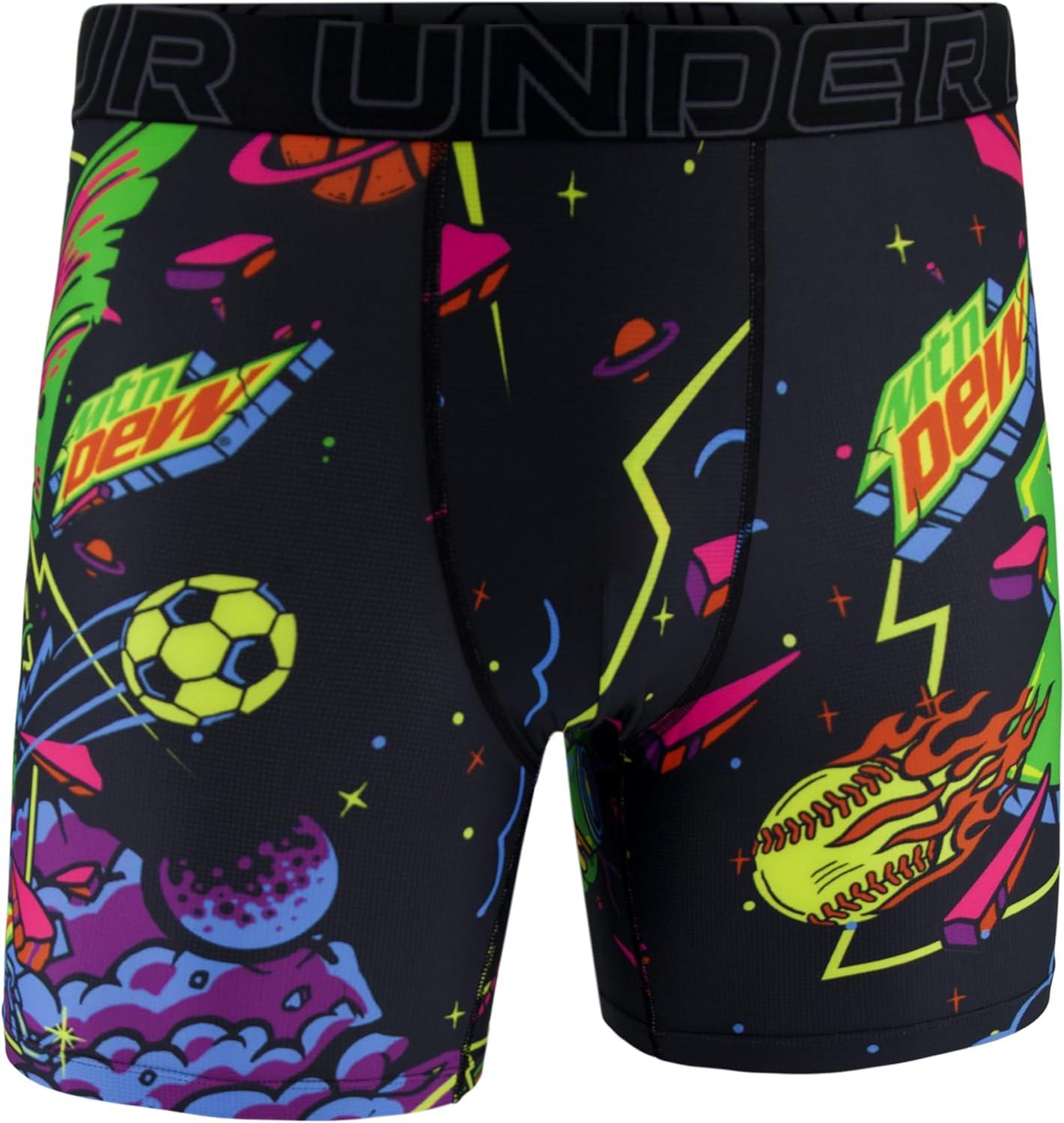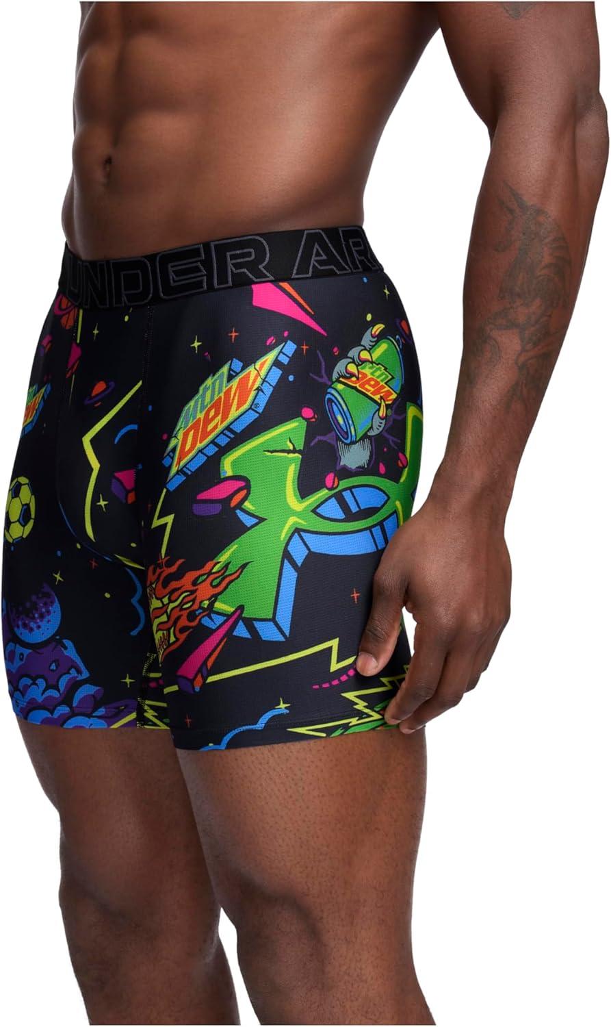 Under Armour mens Performance Tech Mesh Print Singles, 6″ Inseam Boxer Brief(Multi Sport Mountain Dew-single)