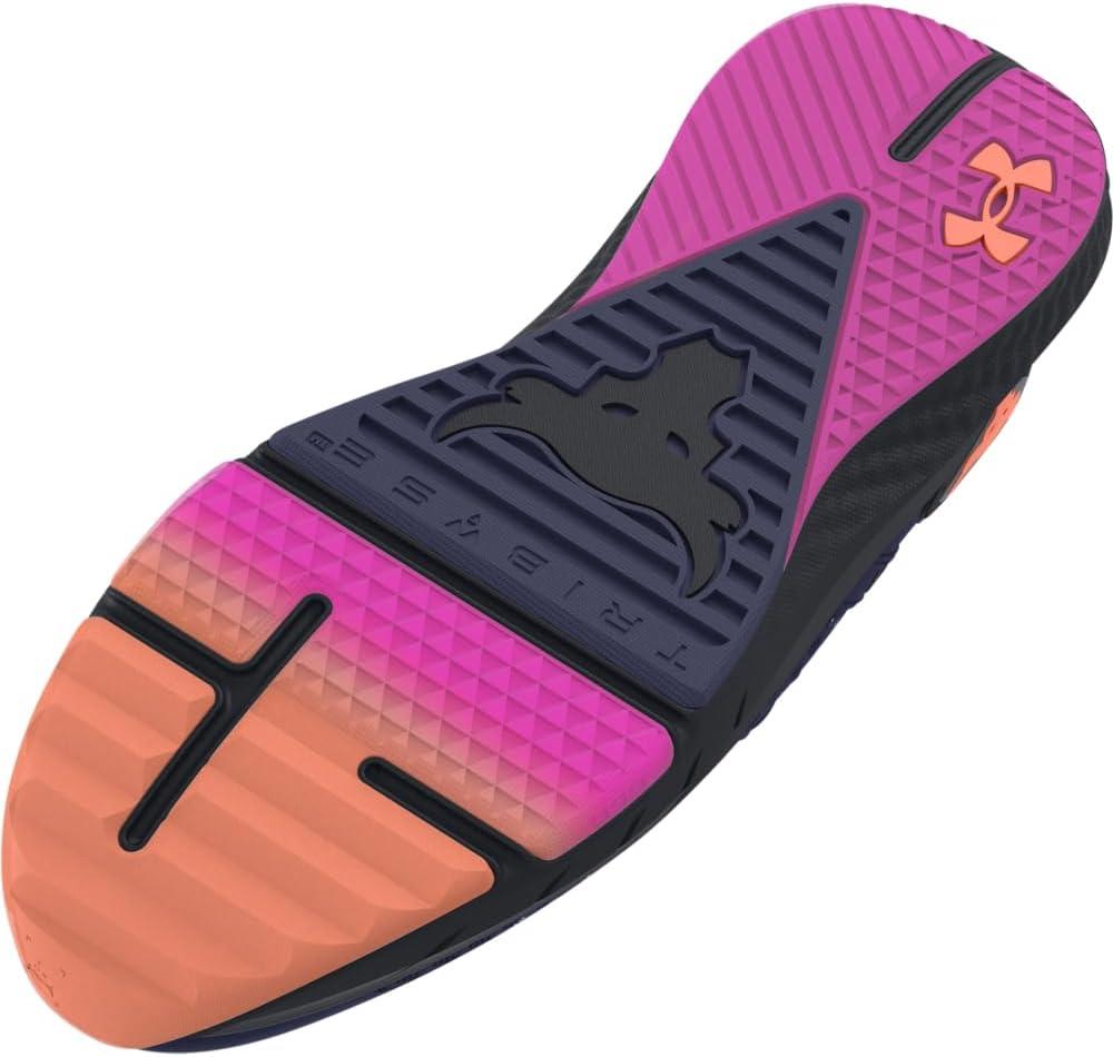 These shoes were built for explosive movement and dynamic training, day in and day out. You never let up, neither do these—stability for strength training, flexibility for HIIT, and cushioning for mobility. Updated perforated mesh upper provides durable ventilation. Strap & heel overlays for improved lockdown. Bootie design for superior fit, comfort & security. Charged Cushioning® midsole absorbs impact & converts it into a responsive burst. UA TriBase™ maximizes ground contact, promotes natural motion & provides flexibility to grip during lifts. Full rubber outsole for elevated traction & durability. . . . . 0.