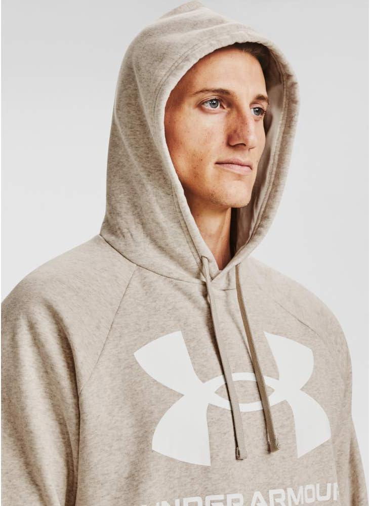 Under Armour Men’s Rival Fleece Big Logo Hoodie(Highland Buff Light Heather (200)/Onyx White)