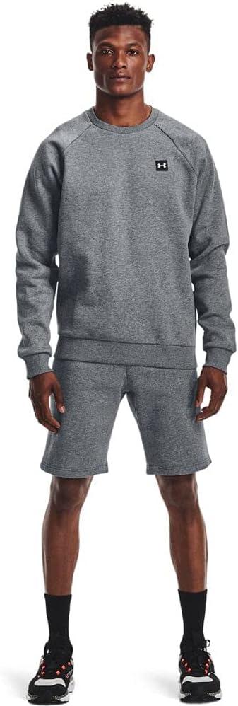 Under Armour Men’s Rival Fleece Crew T-Shirt(Pitch Gray Light Heather (012)/Onyx White)