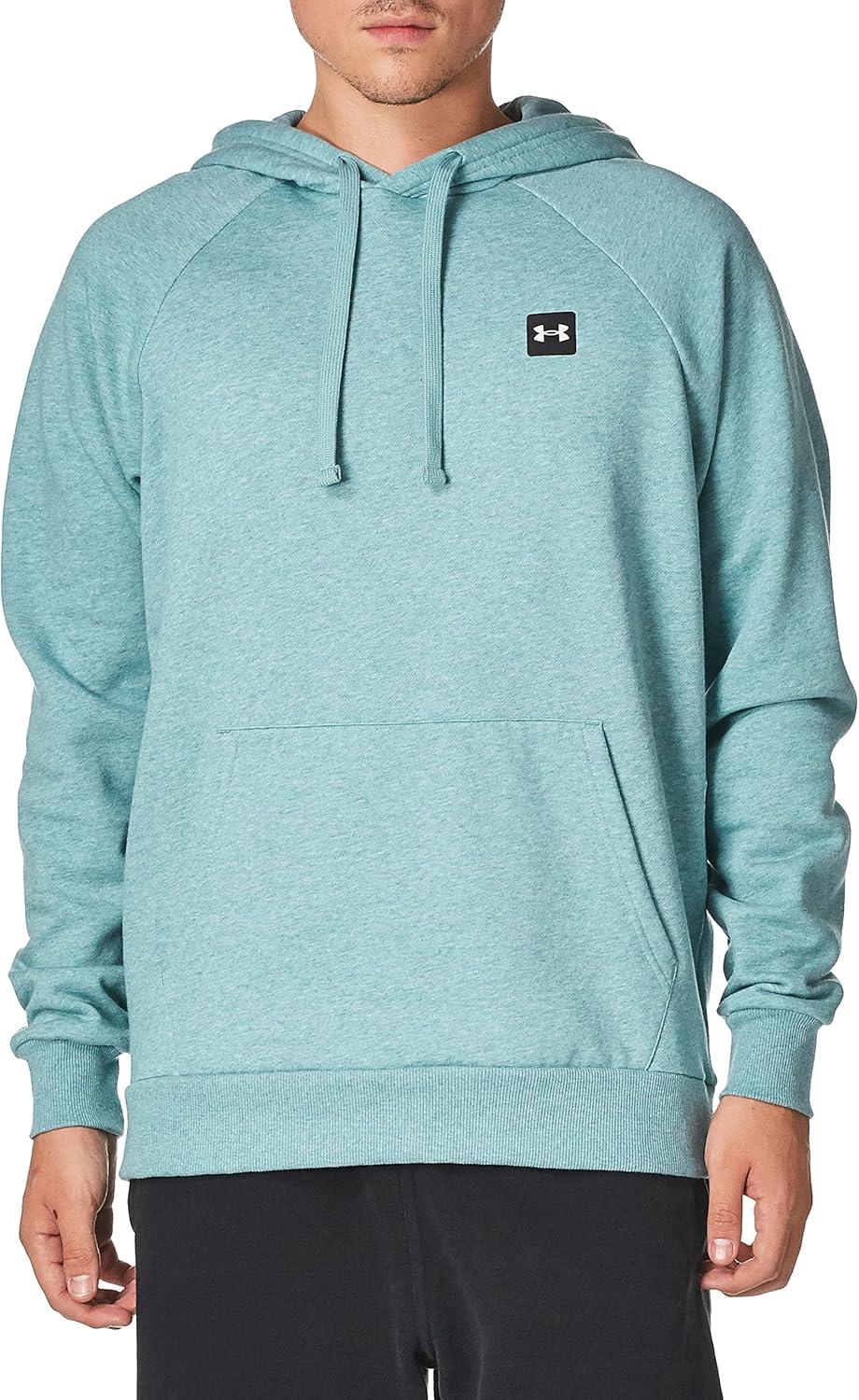 Under Armour Men’s Rival Fleece Hoodie(Retro Teal Light Heather (391)/Onyx White)