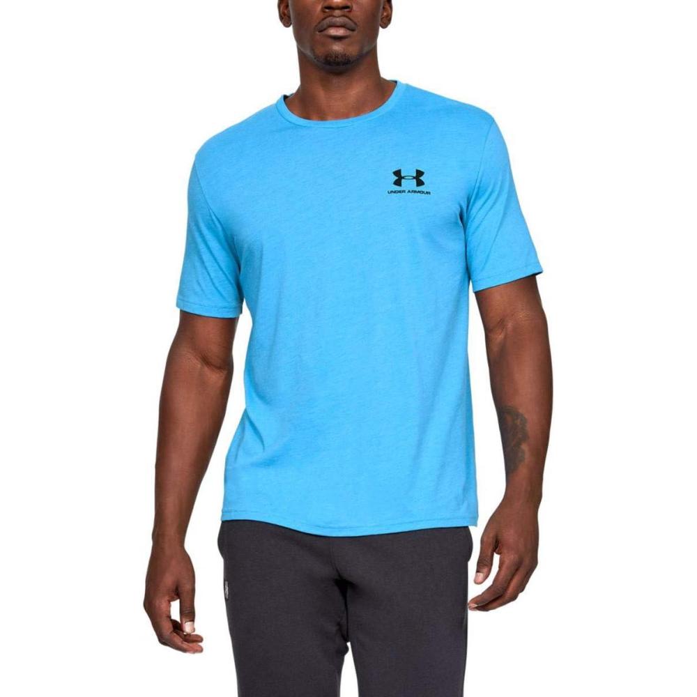 Under Armour Men’s Sportstyle Colorblock T-Shirt(Ether Blue Medium Heather (452)/Black)