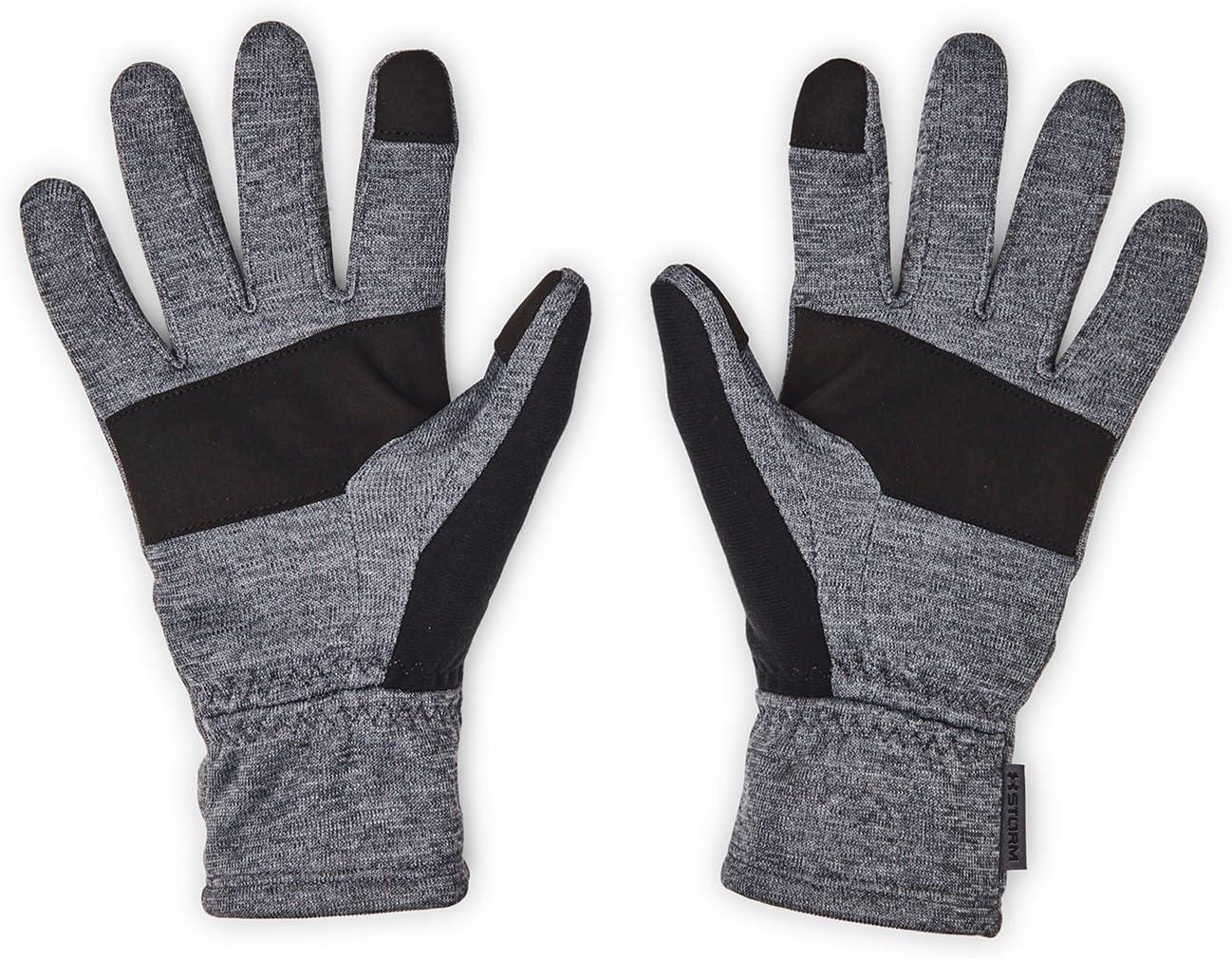 UA Storm technology repels water without sacrificing breathability. Soft sweater-fleece exterior fabric with heathered look. Brushed Armour Fleece® interior lining traps heat to keep you warm & comfortable. Conductive suede tips on thumb & index finger so you can use devices without taking your gloves off. Extra soft Speedwipe™ fleece placed on back of thumb