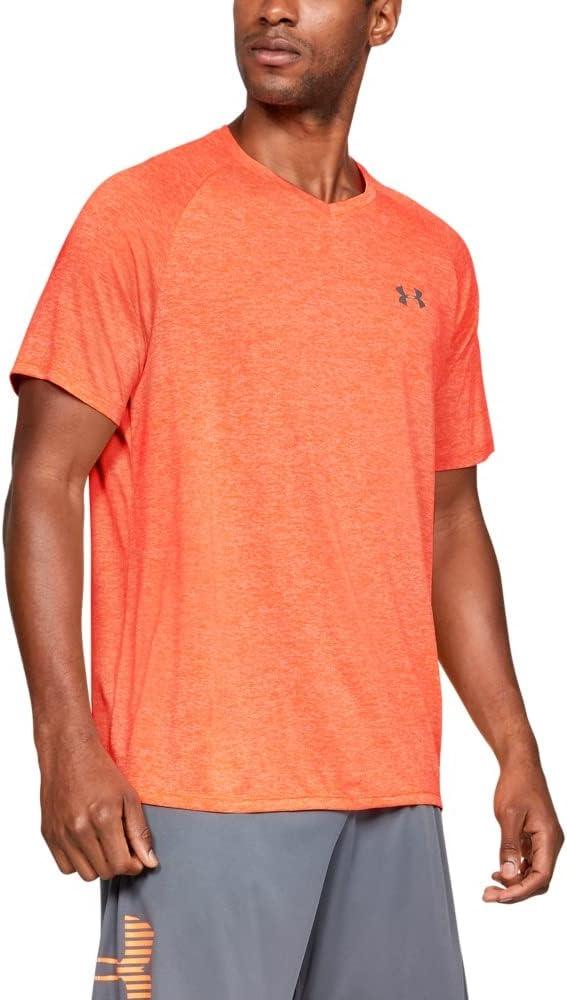 Under Armour Mens Tech 2.0 V-Neck Short-Sleeve T-Shirt(Orange Glitch (882)/Pitch Gray)