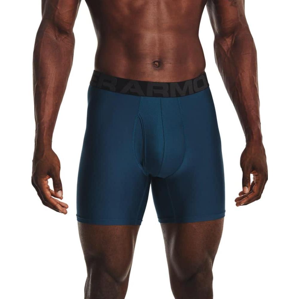 imageUnder Armour Mens Tech 6inch Boxerjock 1Pack481 Cyber Blue   Jet Gray