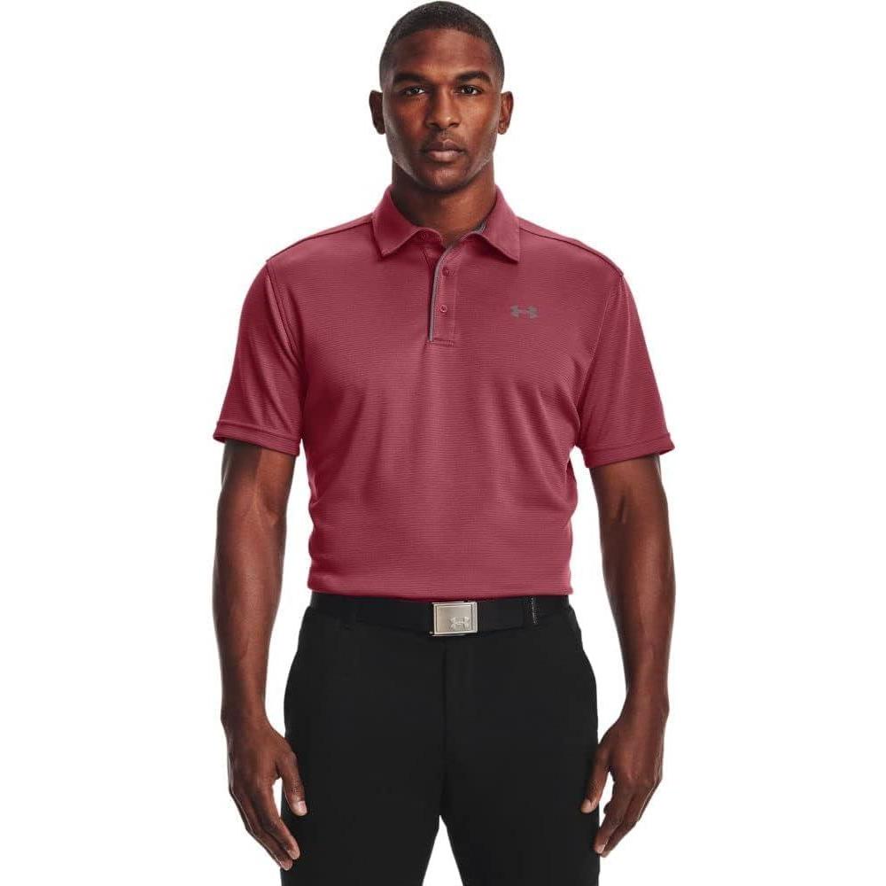Under Armour Men’s Tech Golf Polo(Beta Red (632)/Pitch Gray)