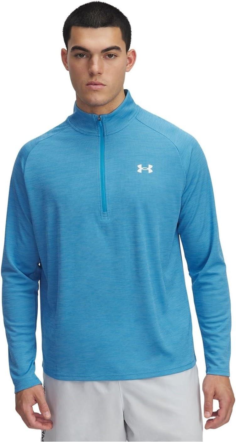 Under Armour Men’s Tech Textured Half Zip Long Sleeve(Ether Blue / Tonic / White)