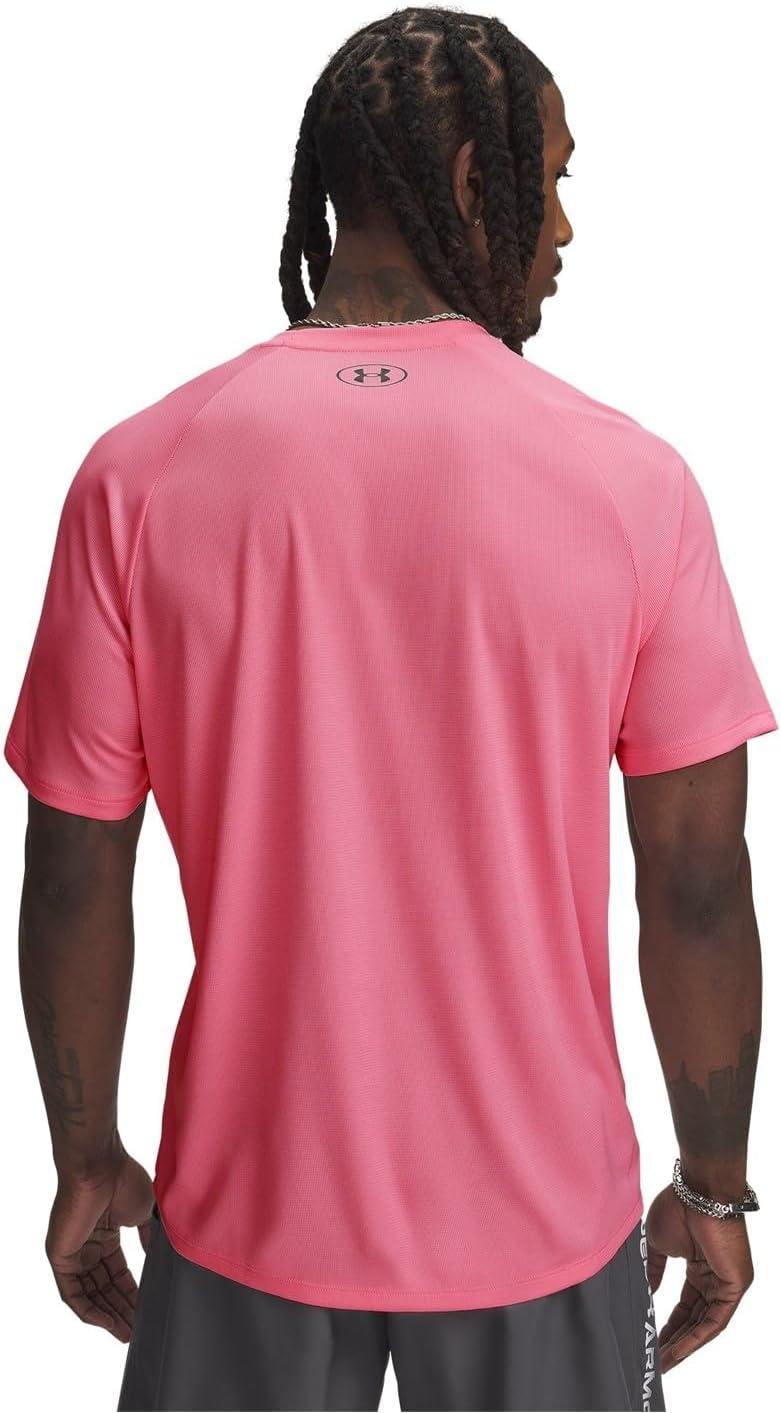 Under Armour Mens Tech Textured Short Sleeve T Shirt(Prime Pink/Black)