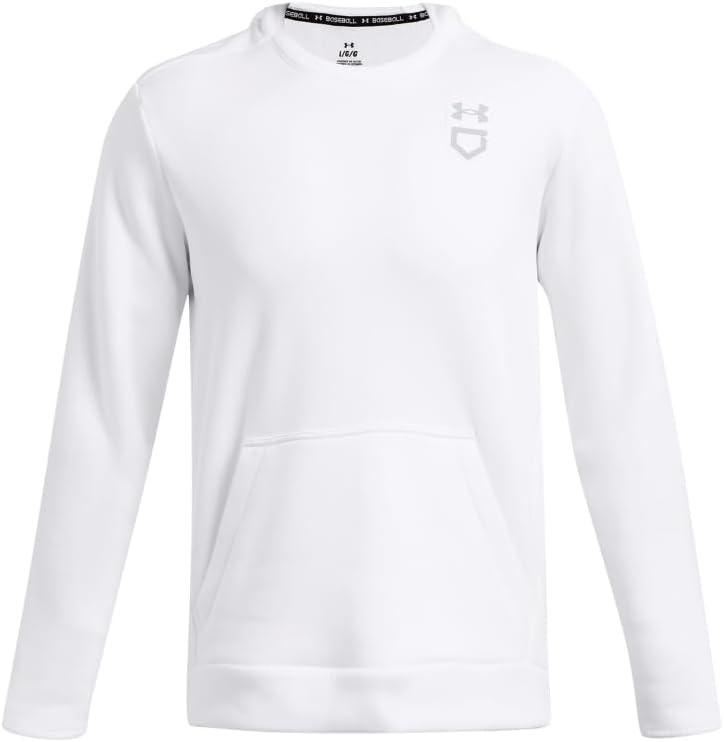 Armour Fleece® is our original performance replacement for old-school fleece. It's light, incredibly warm, and has just the right amount of stretch. Armour Fleece® is light, breathable & stretchy for warmth that still lets you move. Soft inner layer traps heat to keep you warm & comfortable. Zero-distraction hood design with no drawstring gives you full peripheral vision. Room in shoulders & chest for comfort while wearing over a jersey. Tighter forearms stay put while batting & playing catch & shortened cuffs for comfort with batting gloves. Front kangaroo pocket with snap closure. . . . . 100% Polyester.