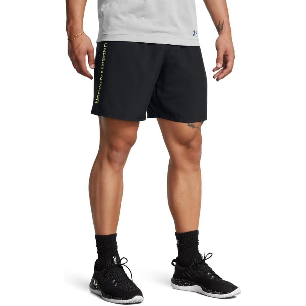 Under Armour Men’s Woven Wordmark Shorts((004) Black / / Morph Green)