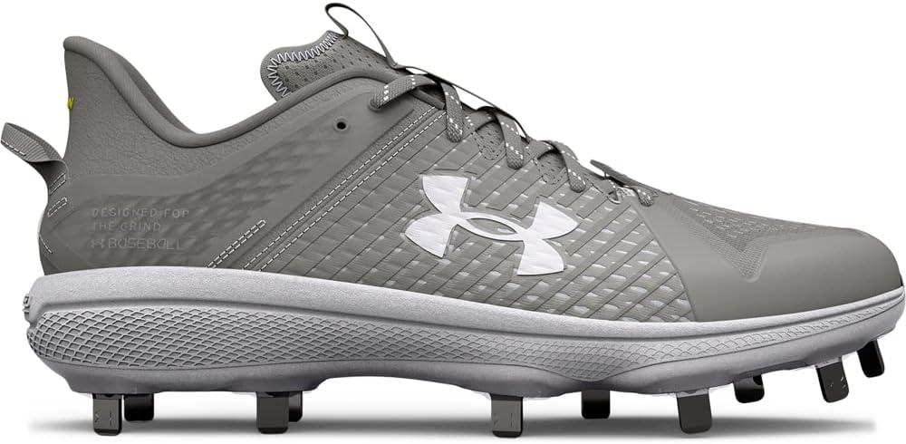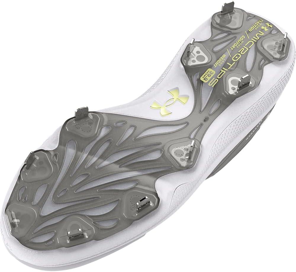 Updated plush heel, engineered textile forefoot & breathable toe box make it fit & feel like a sneaker. TPU cage for added stability during lateral movements. Toe drag protection & strategic TPU overlays in high-abrasion areas for durability that lasts all season. Molded Ortholite™ sockliner maintains compression set for long-lasting comfort & improved traction. Charged Cushioning® midsole converts impact into explosive speed & power on the diamond. New UA Microtips technology provides comfort, more traction & less weight underfoot. 10 strategically placed cleats on perimeter for more points of ground contact to reduce cleat pressure. Weight: 12.3 oz.. Lace type: Standard tie. .