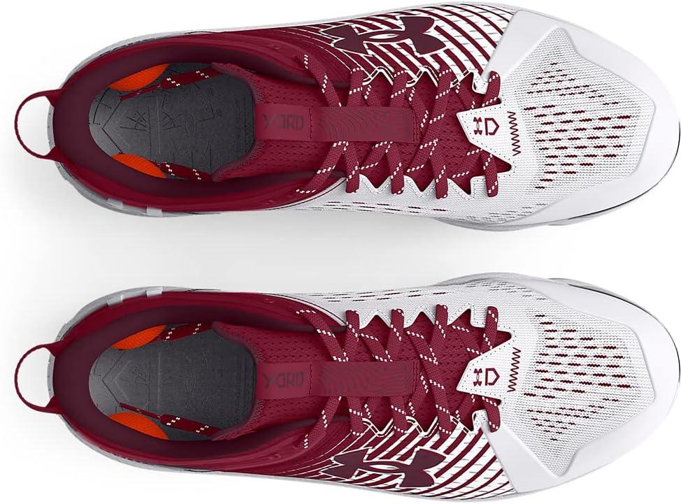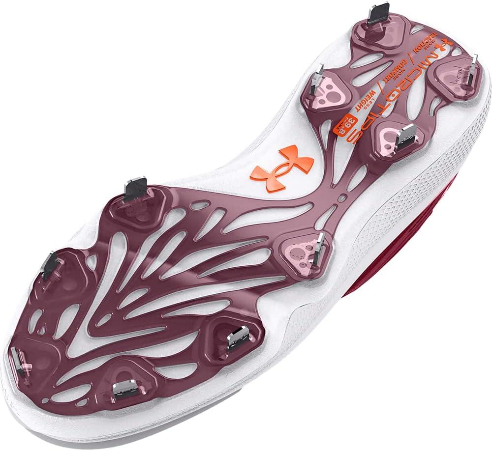 Updated plush heel, engineered textile forefoot & breathable toe box make it fit & feel like a sneaker. TPU cage for added stability during lateral movements. Toe drag protection & strategic TPU overlays in high-abrasion areas for durability that lasts all season. Molded Ortholite™ sockliner maintains compression set for long-lasting comfort & improved traction. Charged Cushioning® midsole converts impact into explosive speed & power on the diamond. New UA Microtips technology provides comfort, more traction & less weight underfoot. 10 strategically placed cleats on perimeter for more points of ground contact to reduce cleat pressure. Weight: 12.3 oz.. Lace type: Standard tie. .
