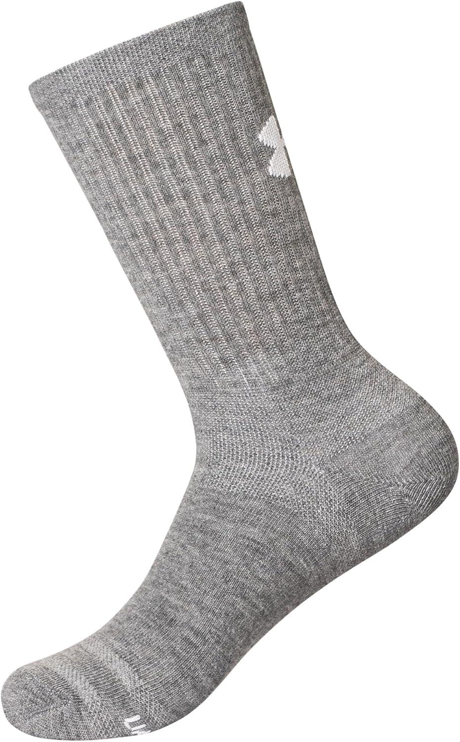 Under Armour Unisex Adult Essential Crew Socks (6-Pack)((100) White / White / Halo Gray)