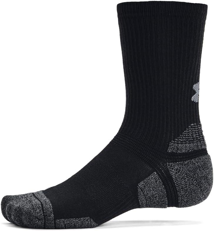 Under Armour Unisex-Adult Performance Tech Pro Crew Socks 3 Pack((001) Black / Black / Castlerock)