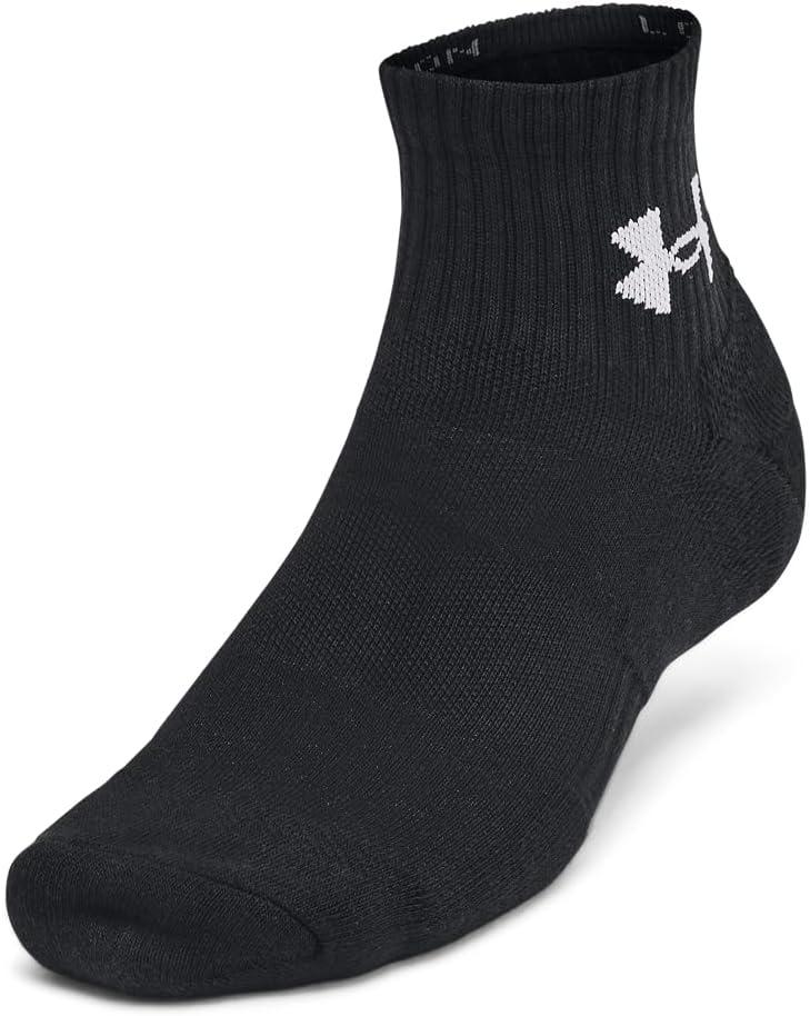 Under Armour unisex-adult Training Cotton Quarter Socks, Multipairs((002) Black / Black / White)