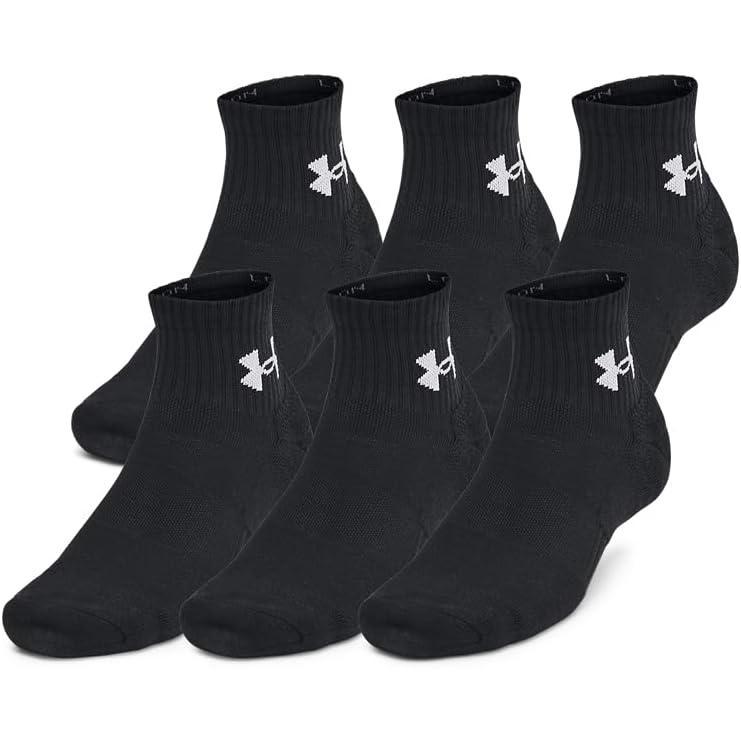 Under Armour unisex-adult Training Cotton Quarter Socks, Multipairs((001) Black / Black / White)