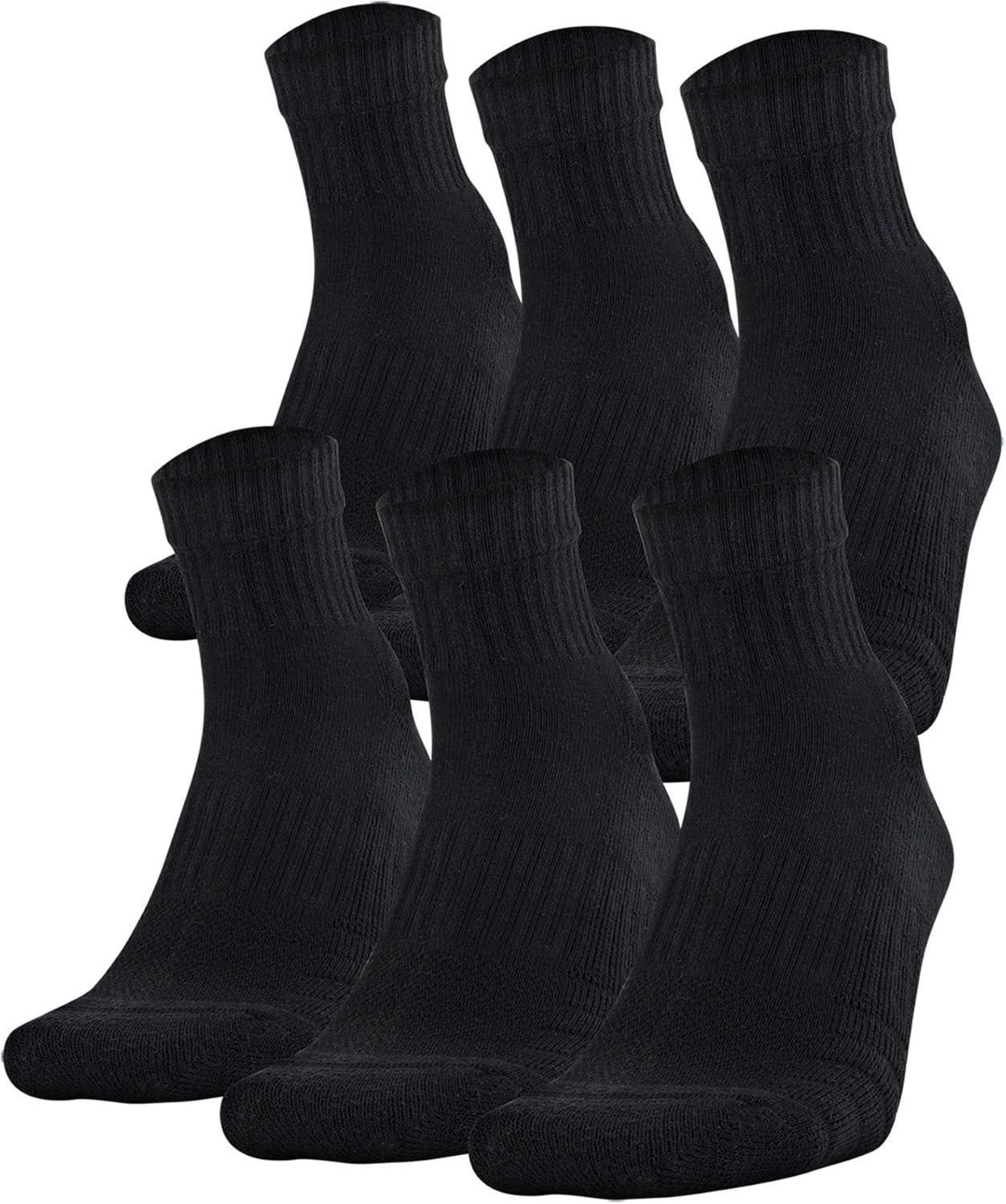 Under Armour unisex-adult Training Cotton Quarter Socks, Multipairs(Black (6-pairs))
