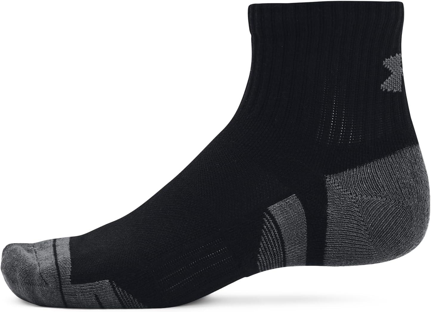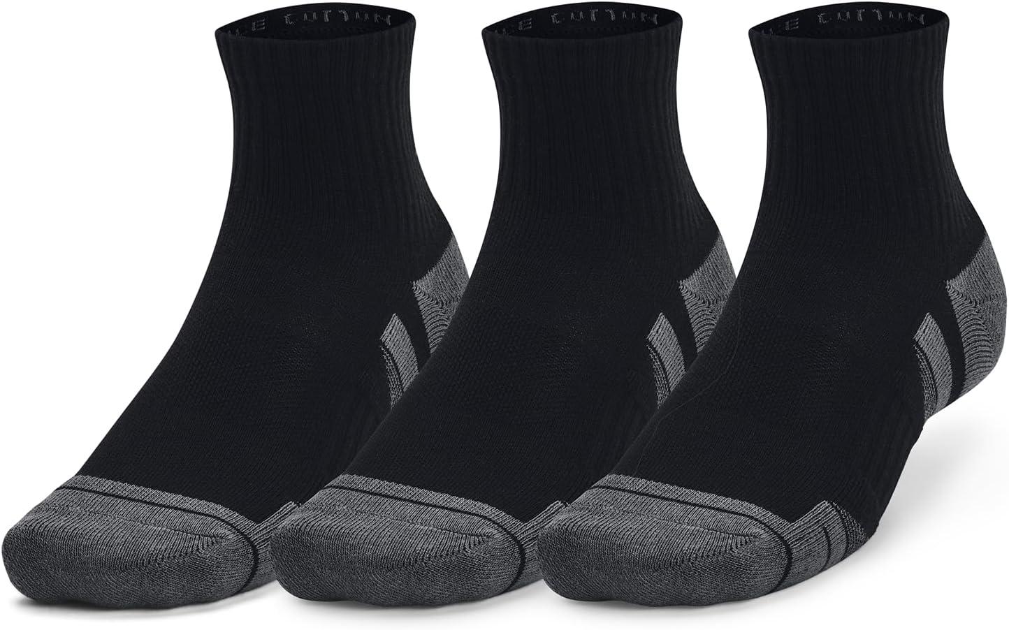 Under Armour unisex-adult Unisex Ua Performance Tech 3-pack Quarter Socks((001) Black / Black / Pitch Gray)