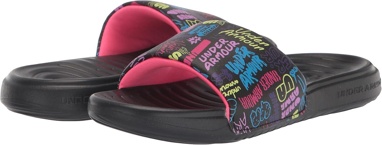 Under Armour Unisex-Child Ansa Graphic Slide Sandal(Black (001)/Pale Moonlight)
