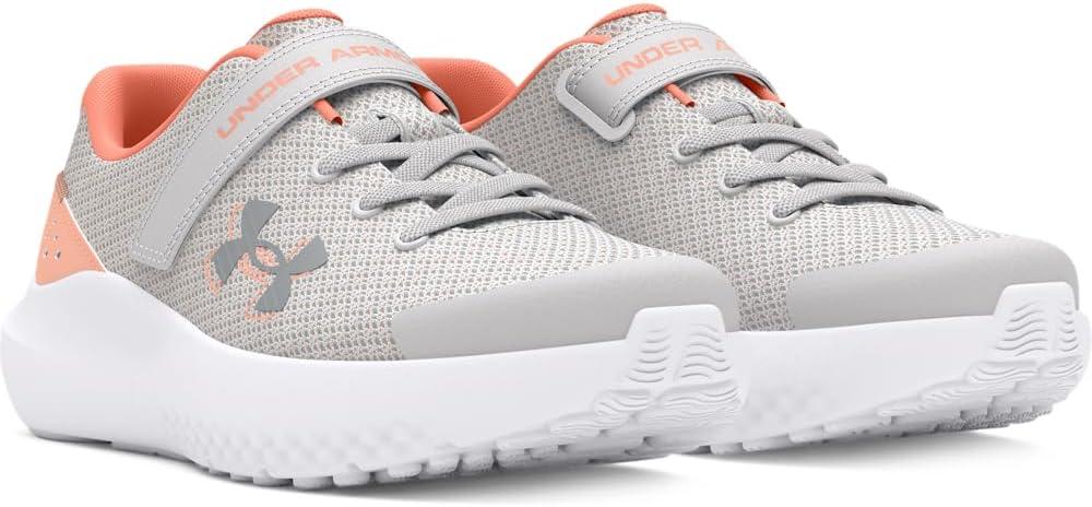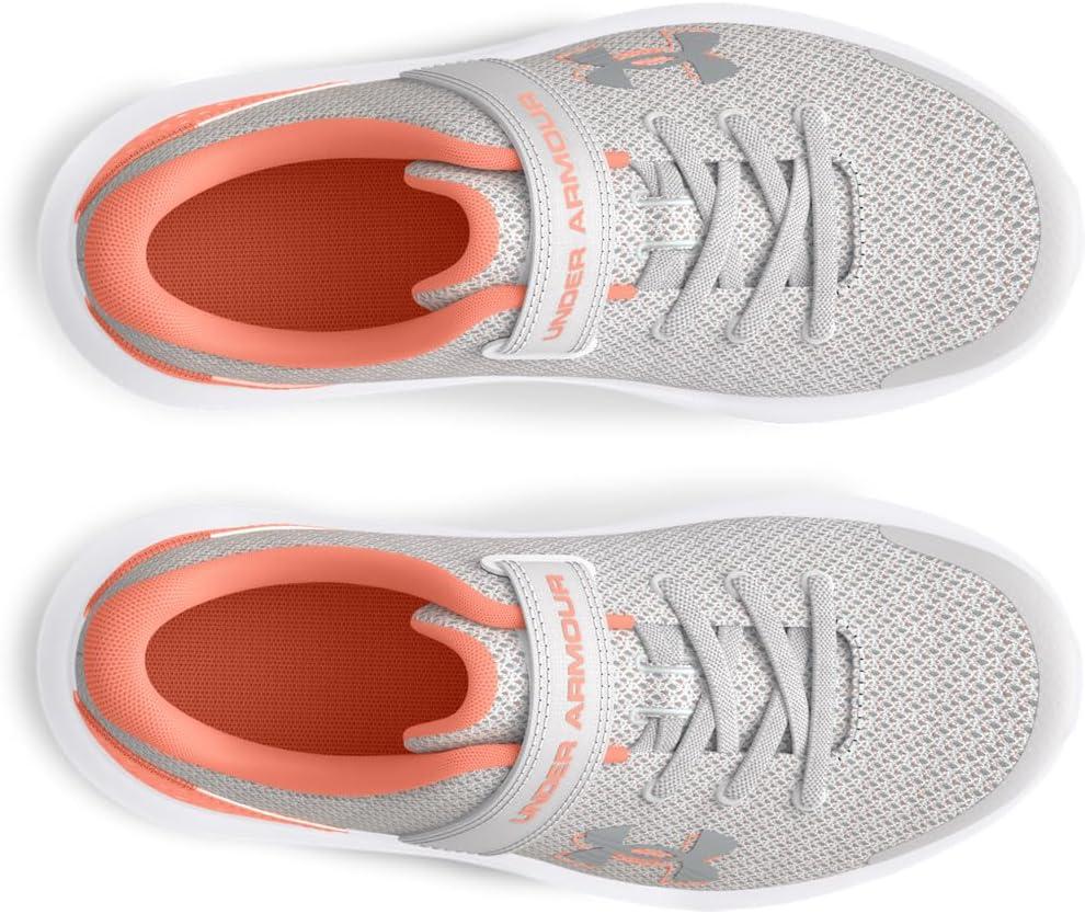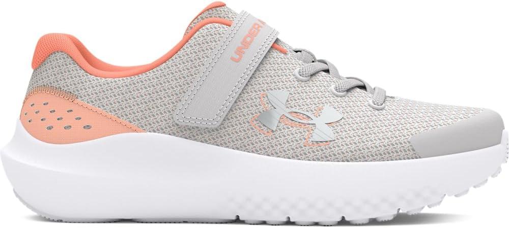 Under Armour Unisex-Child Pre School Surge 4 Alternate Closure Running Shoe((102) Distant Gray/Flare Orange/Metallic Silver)