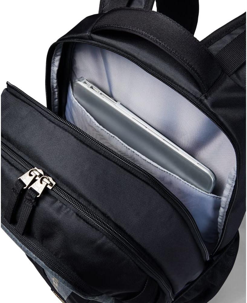 This backpack does it all. It's water-repellent for the rain, tough as nails, comfortable as anything, and has all the pockets you need to hold all your stuff. 100% Polyester. Nylon lining. 15″ shoulder drop. UA Storm technology delivers an element-battling, highly water-resistant finish. Breathable air-mesh padded back panel & adjustable, HeatGear shoulder straps for total comfort. Soft-lined laptop sleeve-holds up to 15″” MacBook Pro or similarly sized laptop. Water-repellent front valuables pocket to keep your stuff safe. Large, gusseted front laundry/shoe pocket placed at bottom of bag (fits pair of shoes up to size 15). 2 D-Rings & molle webbing on shoulder straps for additional attachment points. Two side water bottle pockets. Tough, abrasion-resistant bottom panel. Dimensions When Full: 6.3″”W x 20.1″”H x 12.6″”L. Volume: 1,769.7 Cubic In. / 29 L