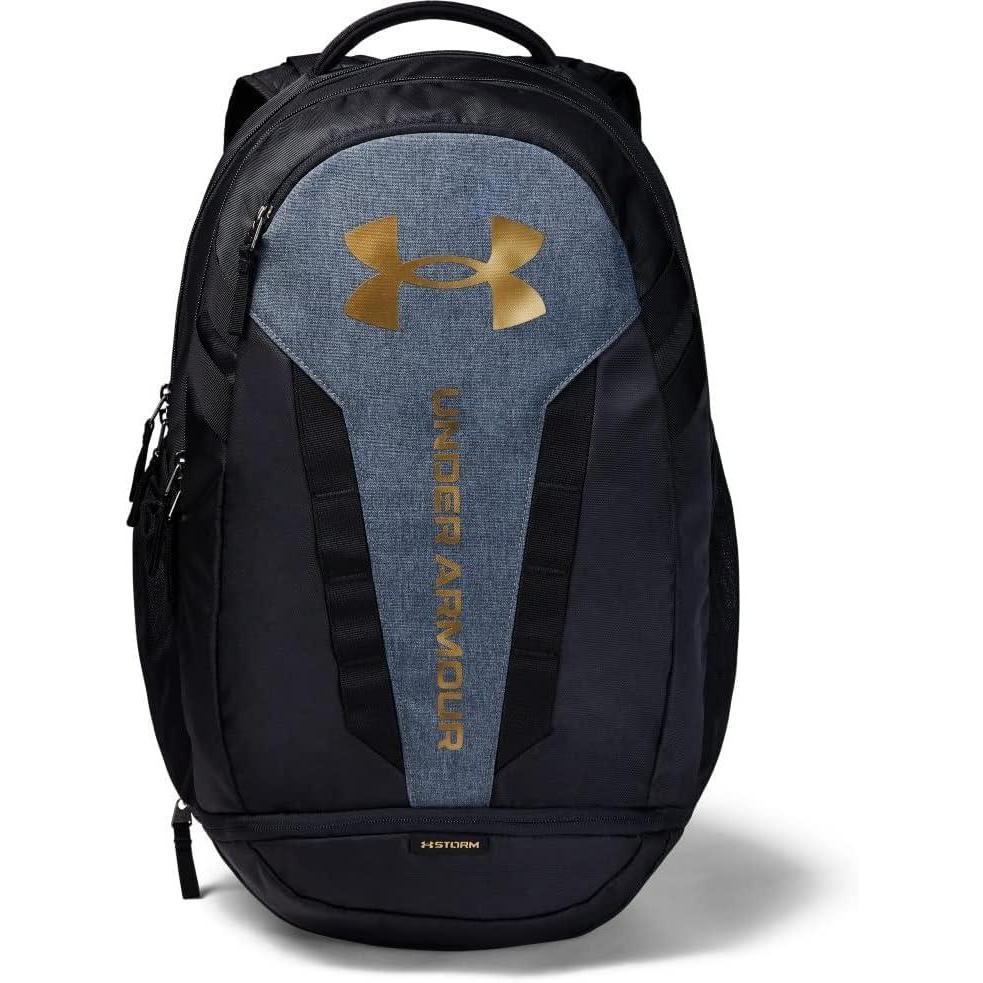Under Armour Unisex Hustle 5.0 Backpack((004) Black / Black Medium Heather / Metallic Gold Luster)
