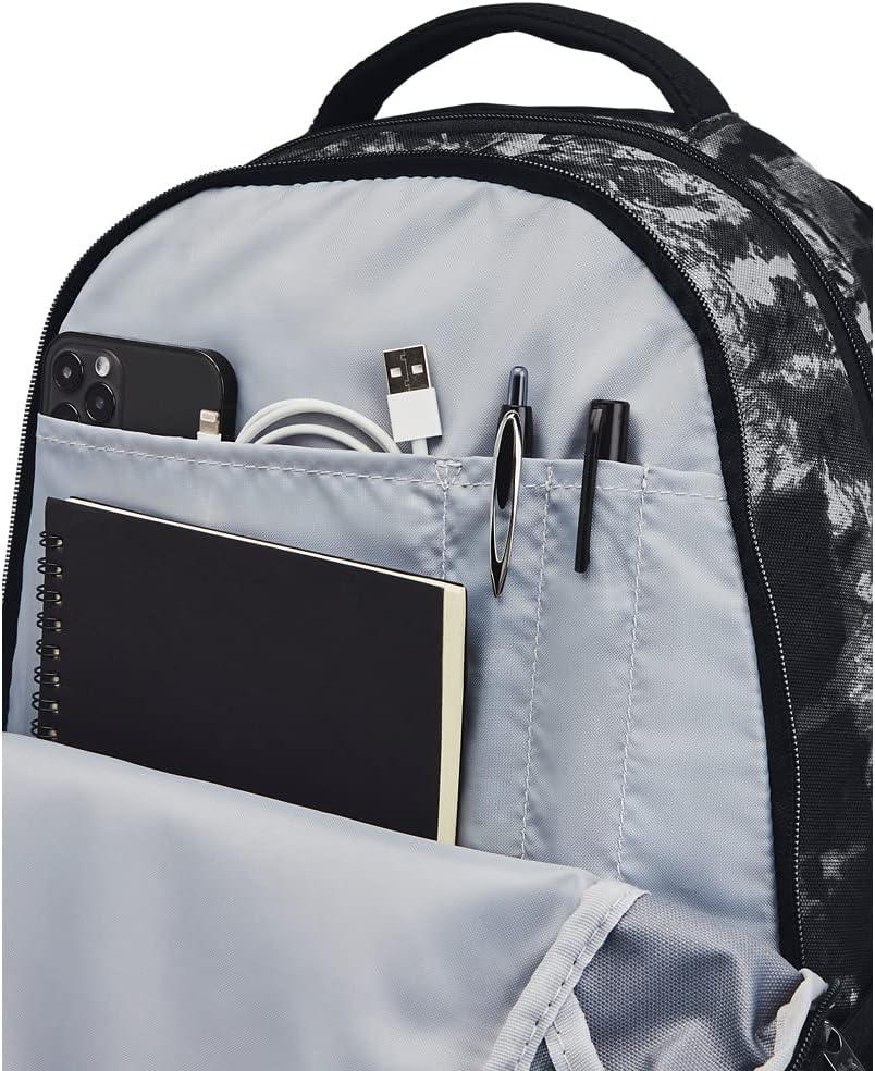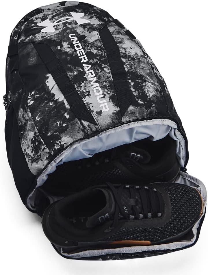 This backpack does it all. It's water-repellent for the rain, tough as nails, comfortable as anything, and has all the pockets you need to hold all your stuff. 100% Polyester. Nylon lining. 15″ shoulder drop. UA Storm technology delivers an element-battling, highly water-resistant finish. Breathable air-mesh padded back panel & adjustable, HeatGear shoulder straps for total comfort. Soft-lined laptop sleeve-holds up to 15″” MacBook Pro or similarly sized laptop. Water-repellent front valuables pocket to keep your stuff safe. Large, gusseted front laundry/shoe pocket placed at bottom of bag (fits pair of shoes up to size 15). 2 D-Rings & molle webbing on shoulder straps for additional attachment points. Two side water bottle pockets. Tough, abrasion-resistant bottom panel. Dimensions When Full: 6.3″”W x 20.1″”H x 12.6″”L. Volume: 1,769.7 Cubic In. / 29 L