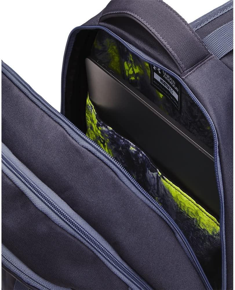 This backpack does it all. It's water-repellent for the rain, tough as nails, comfortable as anything, and has all the pockets you need to hold all your stuff. 100% Polyester. Nylon lining. 15″ shoulder drop. UA Storm technology delivers an element-battling, highly water-resistant finish. Breathable air-mesh padded back panel & adjustable, HeatGear shoulder straps for total comfort. Soft-lined laptop sleeve-holds up to 15″” MacBook Pro or similarly sized laptop. Water-repellent front valuables pocket to keep your stuff safe. Large, gusseted front laundry/shoe pocket placed at bottom of bag (fits pair of shoes up to size 15). 2 D-Rings & molle webbing on shoulder straps for additional attachment points. Two side water bottle pockets. Tough, abrasion-resistant bottom panel. Dimensions When Full: 6.3″”W x 20.1″”H x 12.6″”L. Volume: 1,769.7 Cubic In. / 29 L