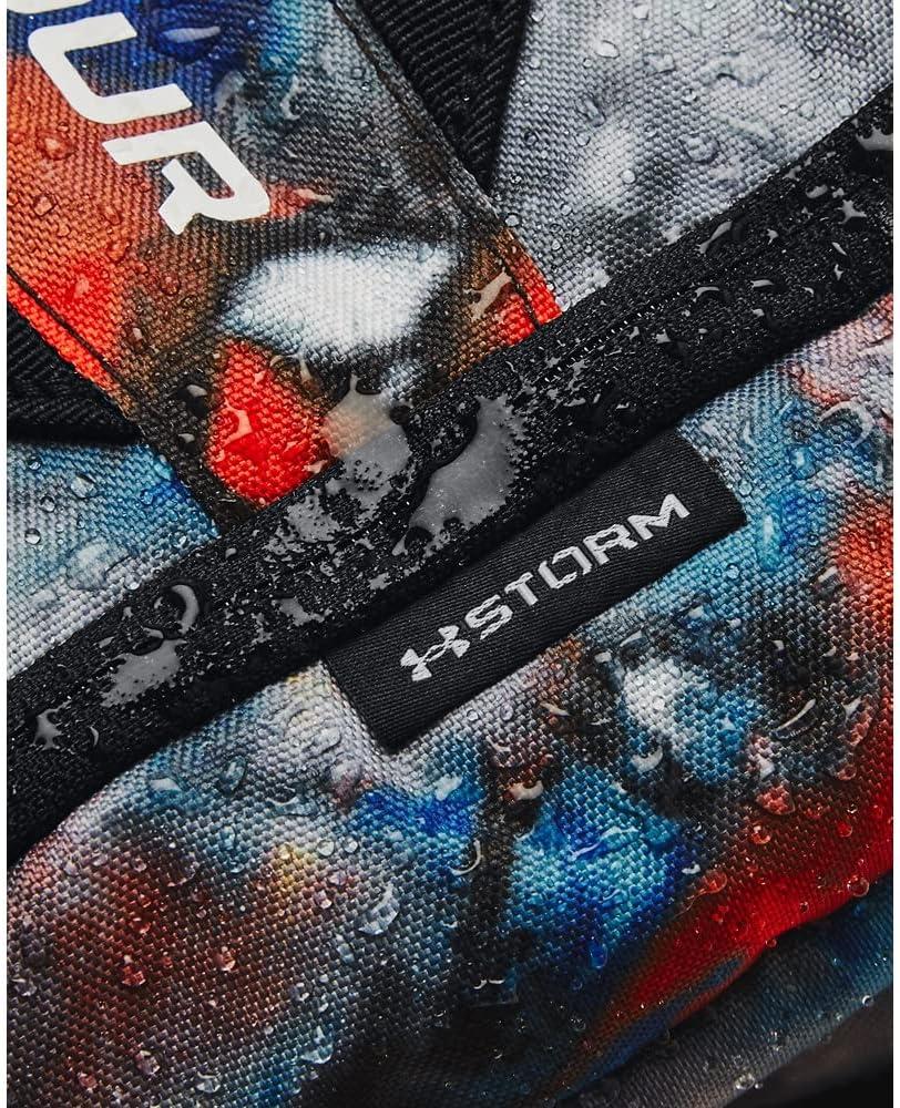 This backpack does it all. It's water-repellent for the rain, tough as nails, comfortable as anything, and has all the pockets you need to hold all your stuff. 100% Polyester. Nylon lining. 15″ shoulder drop. UA Storm technology delivers an element-battling, highly water-resistant finish. Breathable air-mesh padded back panel & adjustable, HeatGear shoulder straps for total comfort. Soft-lined laptop sleeve-holds up to 15″” MacBook Pro or similarly sized laptop. Water-repellent front valuables pocket to keep your stuff safe. Large, gusseted front laundry/shoe pocket placed at bottom of bag (fits pair of shoes up to size 15). 2 D-Rings & molle webbing on shoulder straps for additional attachment points. Two side water bottle pockets. Tough, abrasion-resistant bottom panel. Dimensions When Full: 6.3″”W x 20.1″”H x 12.6″”L. Volume: 1,769.7 Cubic In. / 29 L