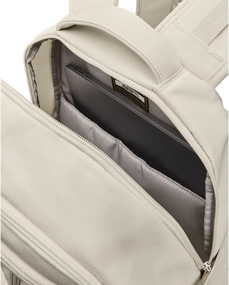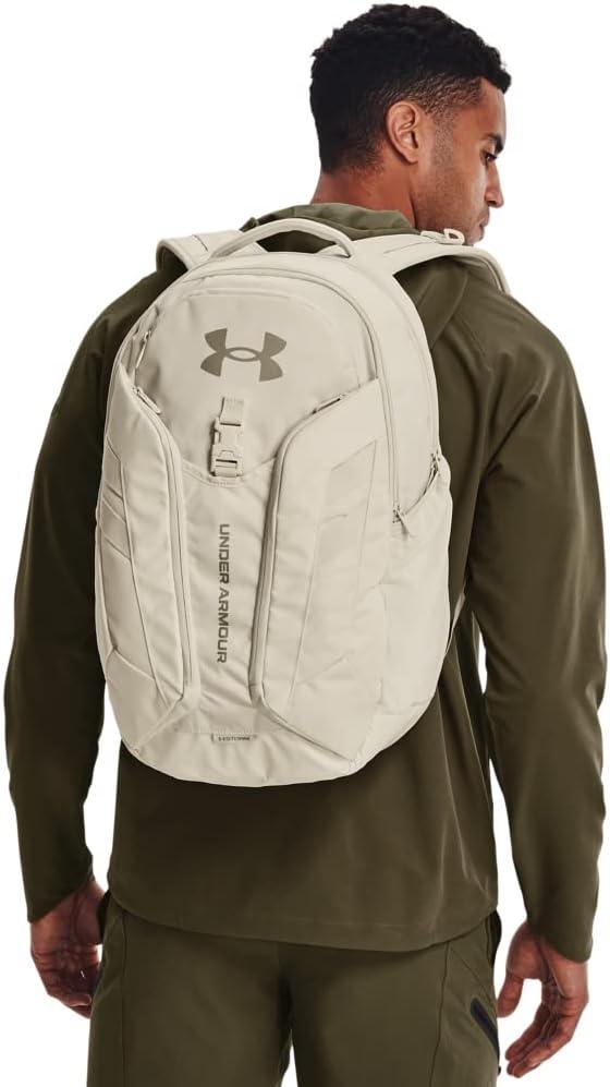 Under Armour Unisex Hustle Pro Backpack, Black (001)/Metallic Silver, One Size Fits All(Stone (279)/White)
