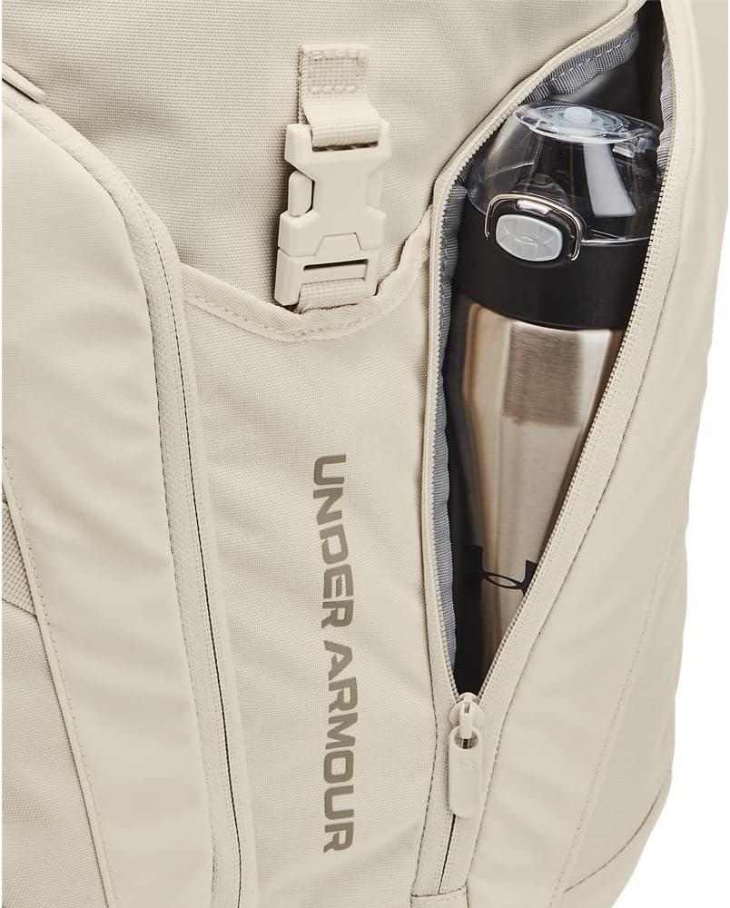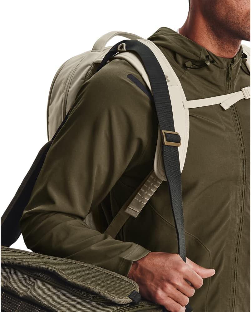 The backpack for whatever you want to throw at it—all the pockets you need, in a comfortable feel and carrying options that make this the first thing you grab on your way out. UA Storm technology delivers an element-battling, highly water-resistant & stain-resistant finish. LEVELED™ strap system guides you to assure straps are adjusted evenly for balanced weight distribution. Breathable air-mesh back panel for added comfort & durable PU-coated bottom. Soft-lined laptop sleeve—holds up to 15″” MacBook Pro® or similarly sized laptop. Insulated pocket, tricot-lined valuables pocket, organization pockets & buckle closure sleeve on front. Large, zippered gusseted laundry/shoes pocket. Adjustable, removable UA Strap Clip™ on shoulder to prevent duffle bag from falling off when carrying both. Strap clip works best when sternum clip is fastened. Dimensions When Full: 8.9″”W x 20.1″”H x 12.6″”L. Volume: 31.5L. 100% Polyester.