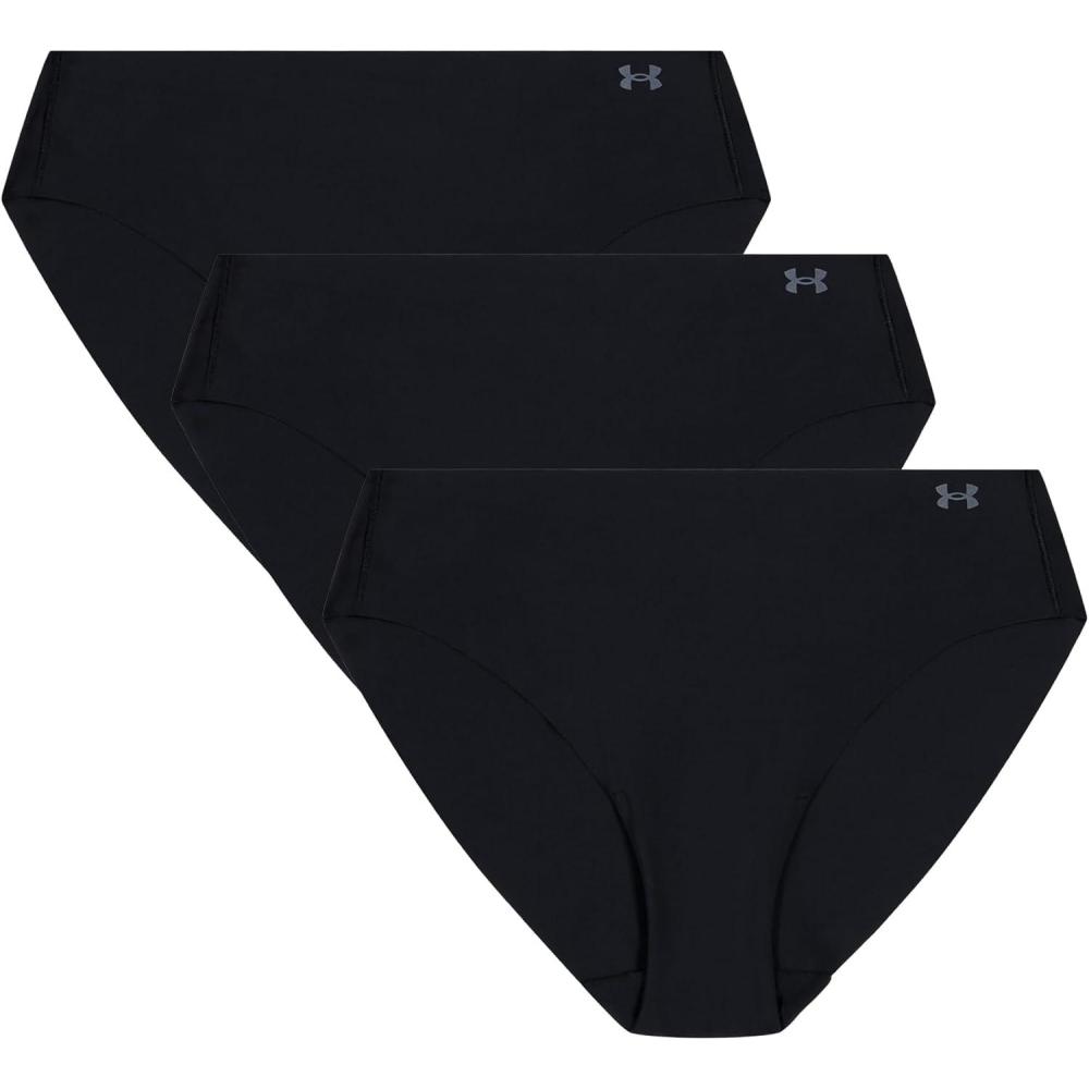 Under Armour womens 3-pack Pure Stretch No Show Bikini Underwear, All-day Comfort & Ultra-soft Fit(Black)