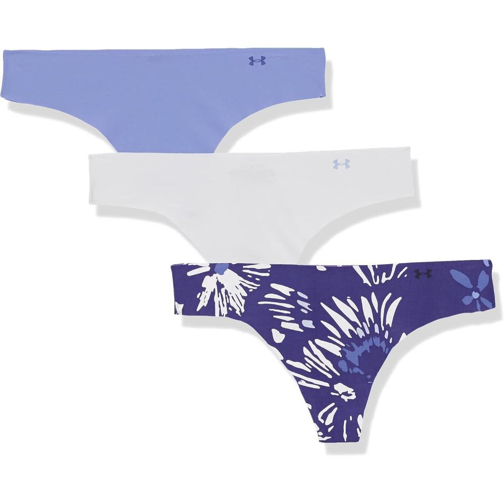 imageUnder Armour Womens 3pack Pure Stretch No Show Thong Underwear Allday Comfort ampamp Ultrasoft Fit495 Baja Blue  Sonar Blue  Sonar Blue