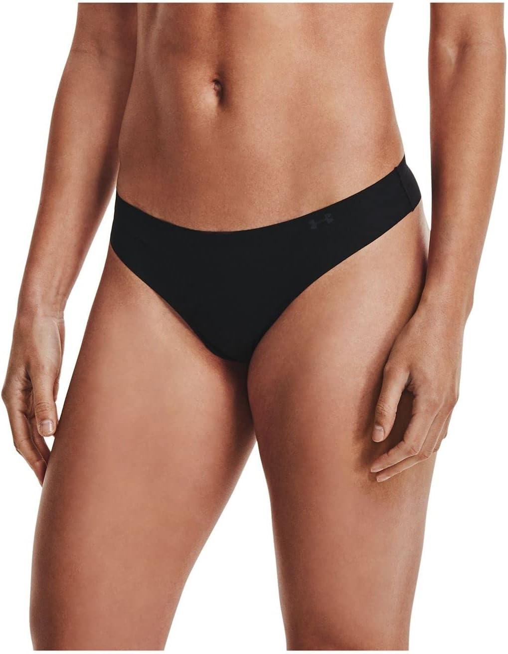 Under Armour Women’s 3-pack Pure Stretch No Show Thong Underwear, All-day Comfort & Ultra-soft Fit(Black – Core)