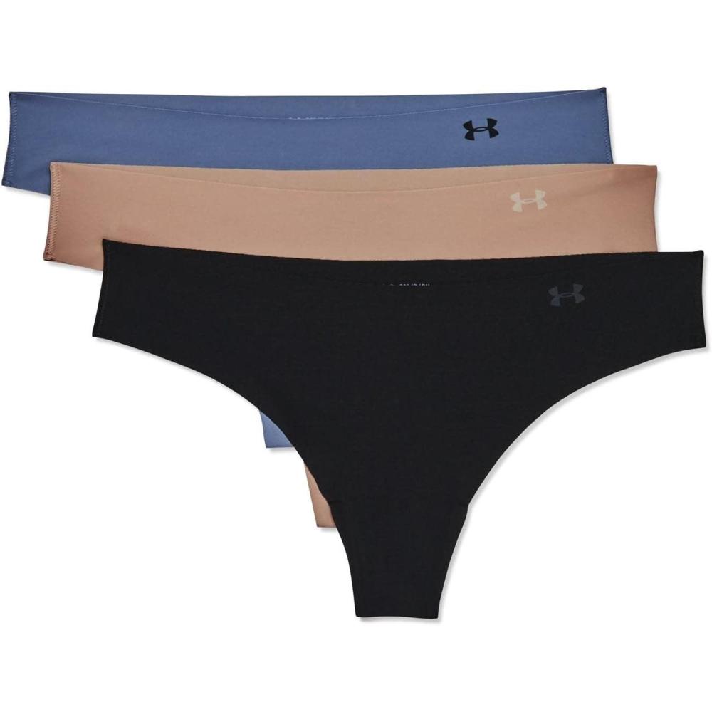 Under Armour Women’s 3-pack Pure Stretch No Show Thong Underwear, All-day Comfort & Ultra-soft Fit(Black (005)/Mineral Blue)