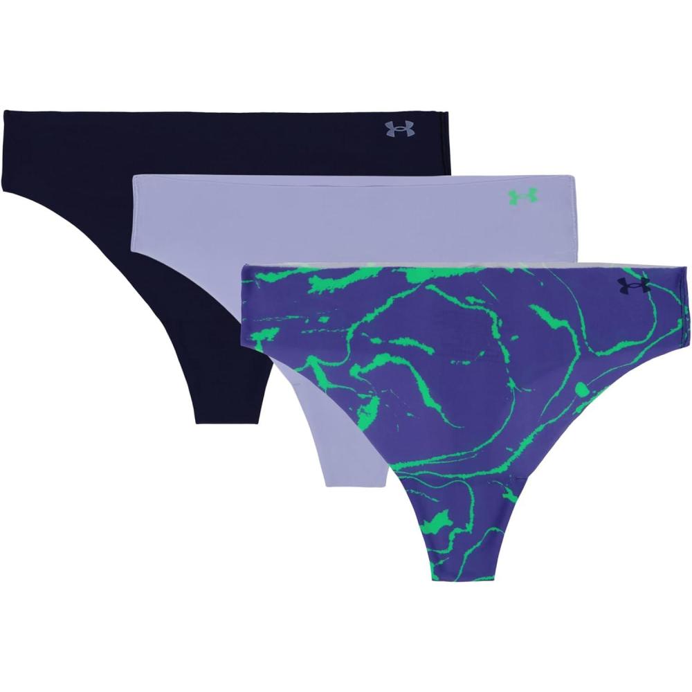 Under Armour Women’s 3-pack Pure Stretch No Show Thong Underwear, All-day Comfort & Ultra-soft Fit(Celeste Print)