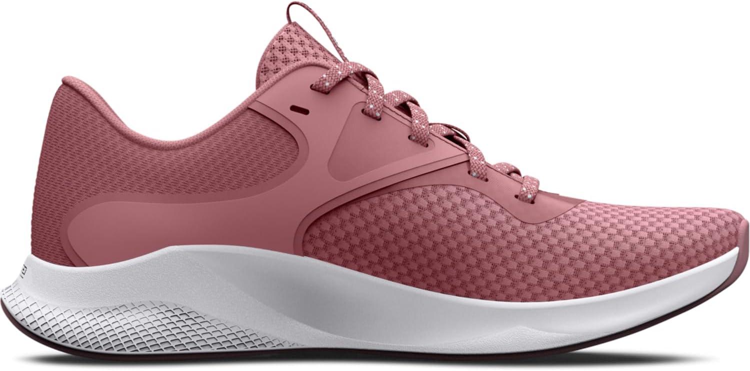 Built specifically for the female foot with a streamlined fit. Lightweight, breathable upper keeps you cool & dry. Strategic TPU overlays for medial stability, lockdown fit & added durability. Charged Cushioning® midsole uses compression molded foam for ultimate responsiveness & durability. Full rubber outsole for maximum durability with multi-directional traction pattern.